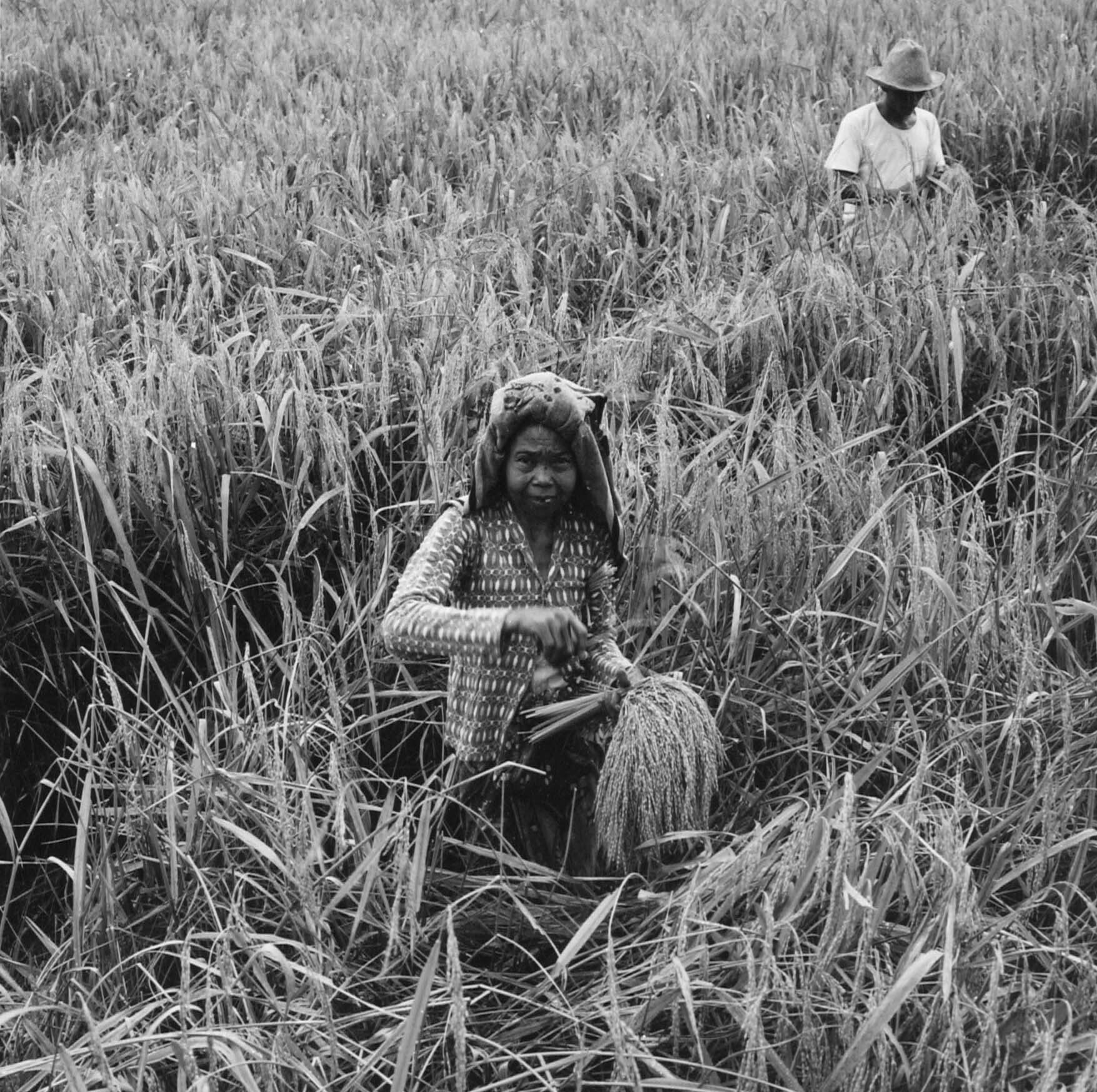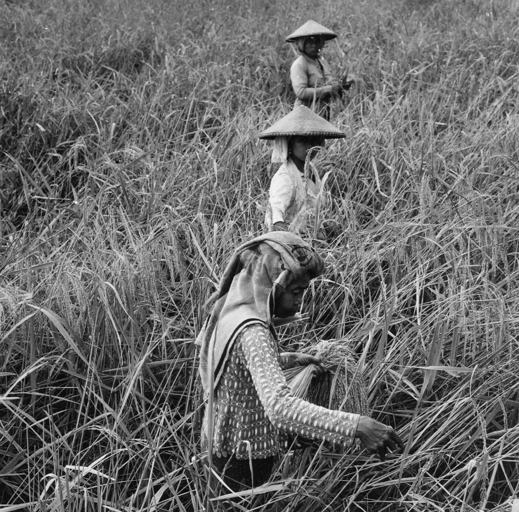 Vrouwen wieden het onkruid tussen de rijstplanten