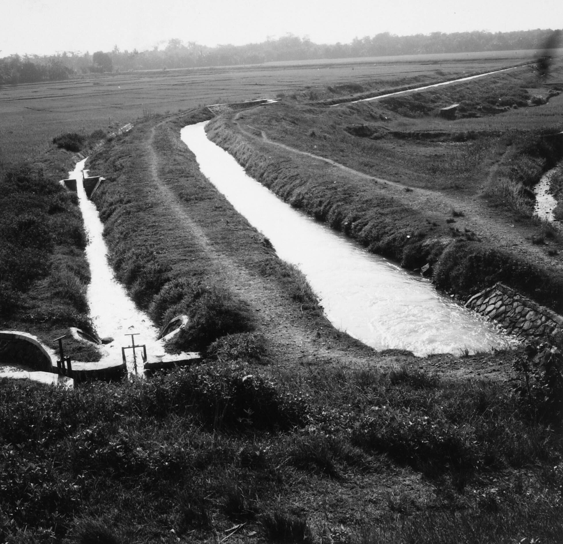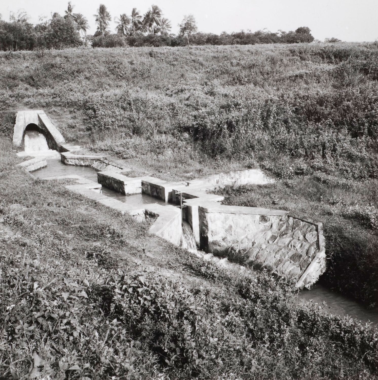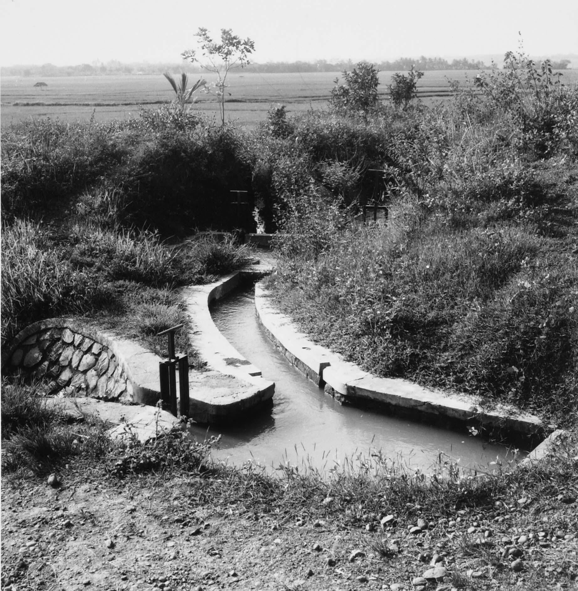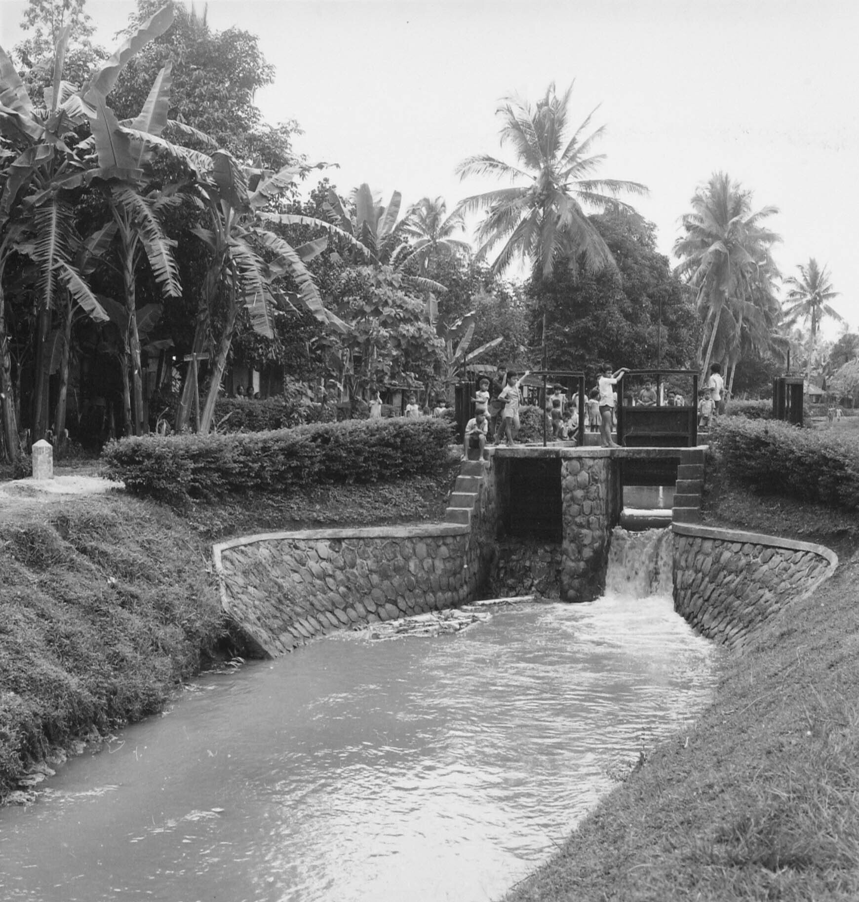 Kinderen spelen bij een verdeelpunt in een irrigatie...