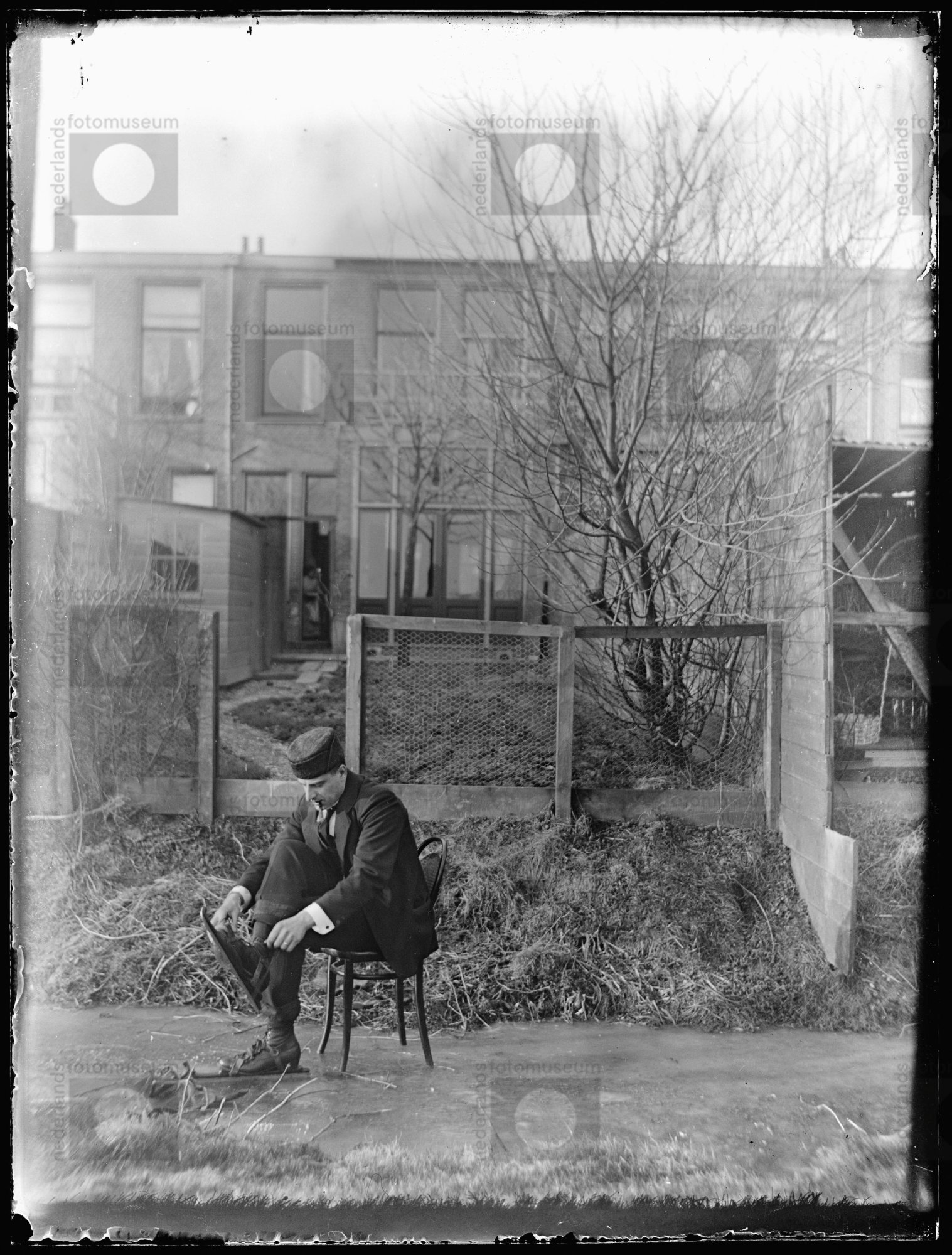 Arie Haentjens bindt zijn schaatsen onder, Leiden (1...