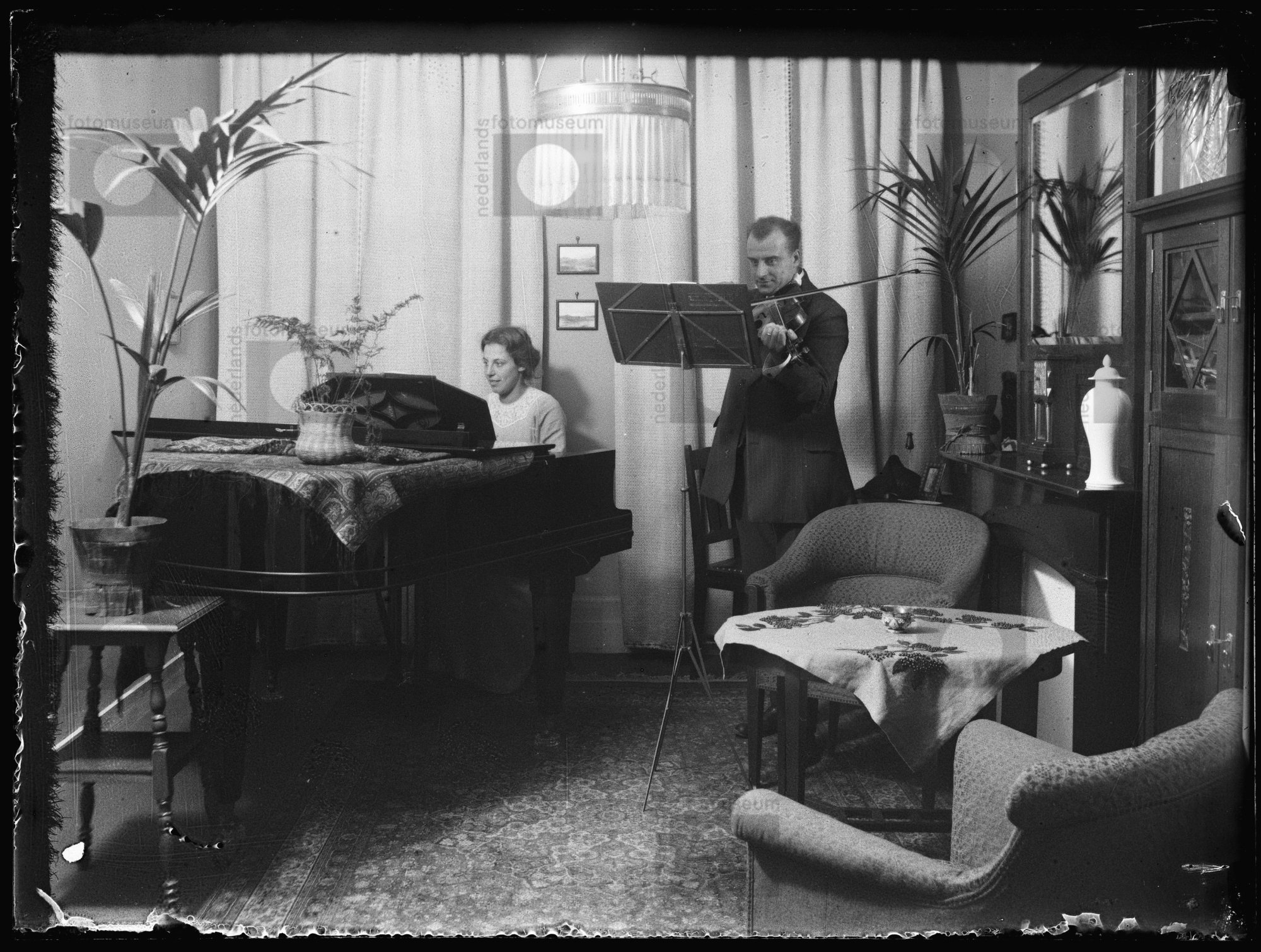 Katharina Behrend en Arie Haentjens in de voorkamer,...