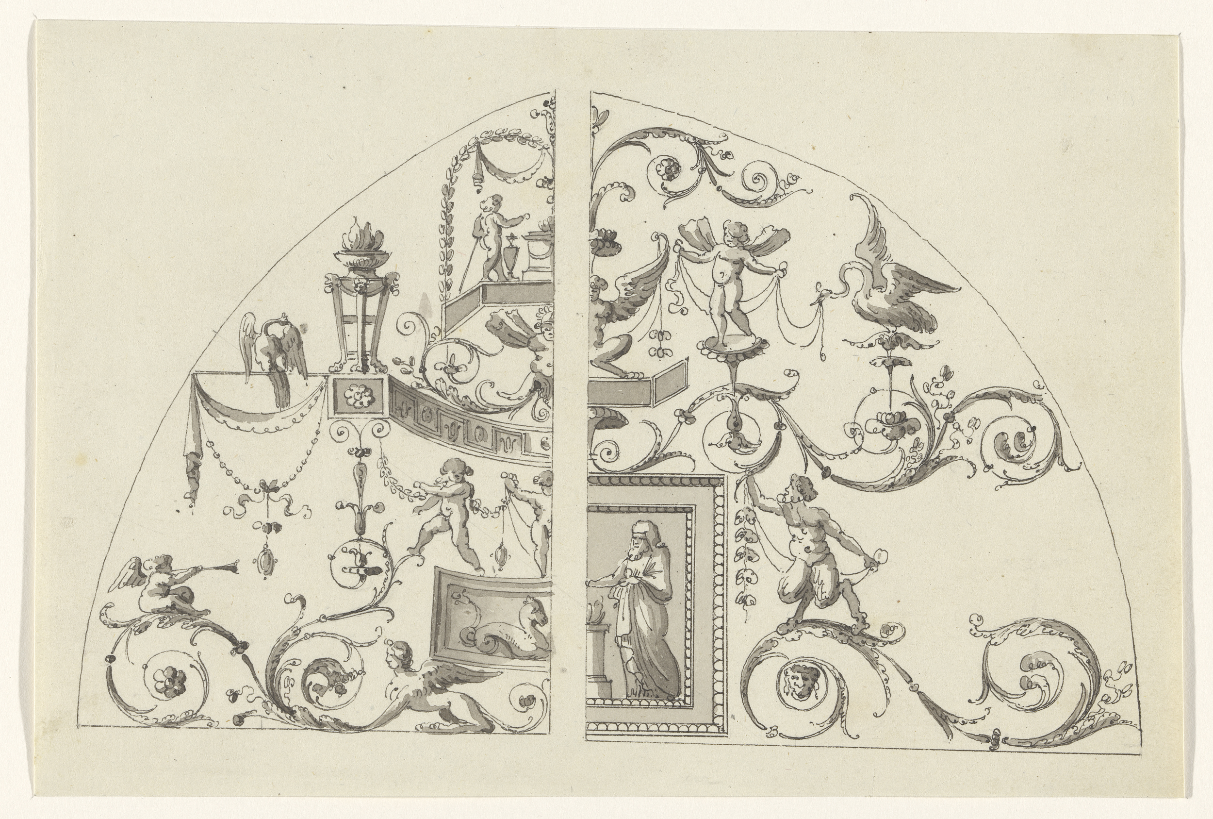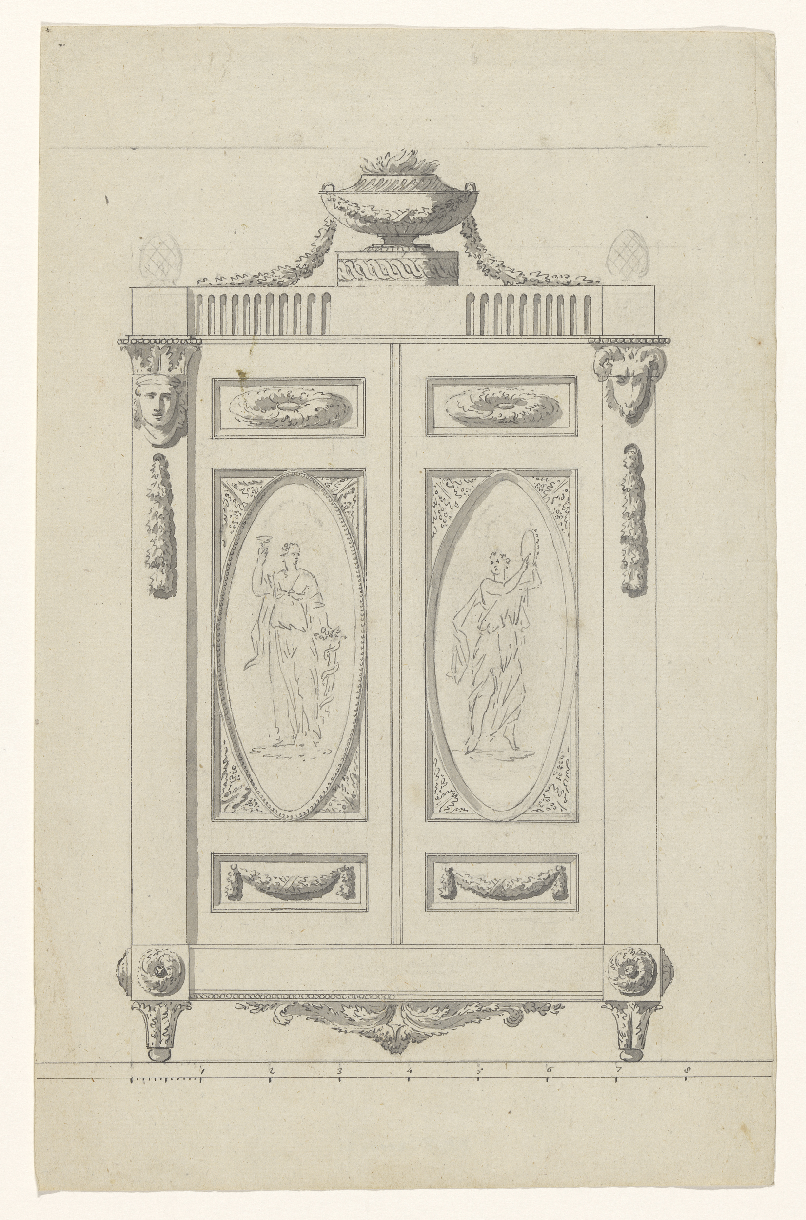 Ontwerp voor een kast met twee deuren waarop vrouwen...