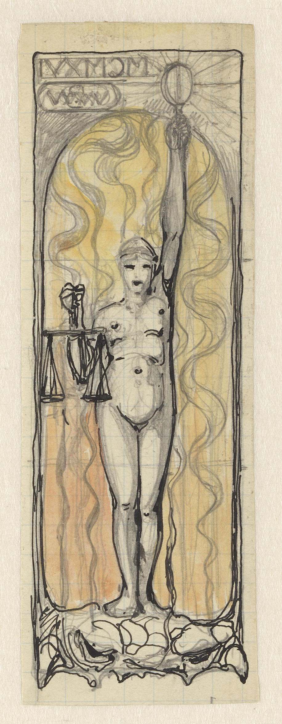 Naakte vrouw met spiegel en een weegschaal