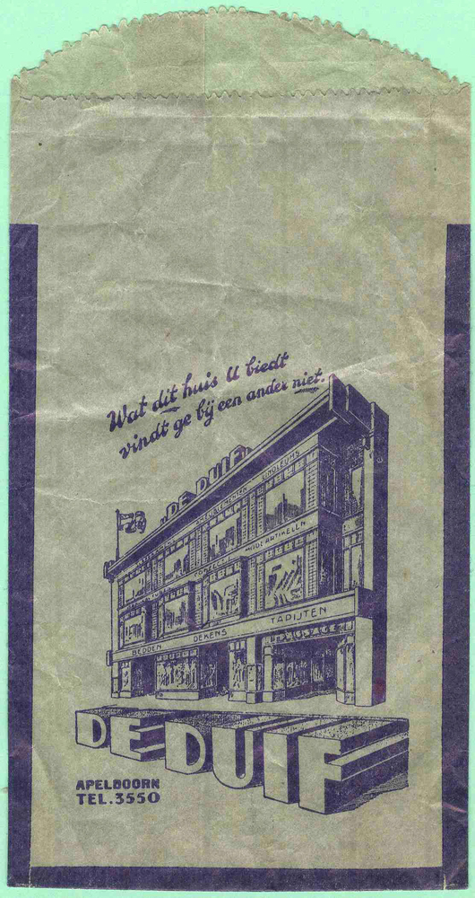 Zakje van papier met reclame opdruk van firma S. Jou...
