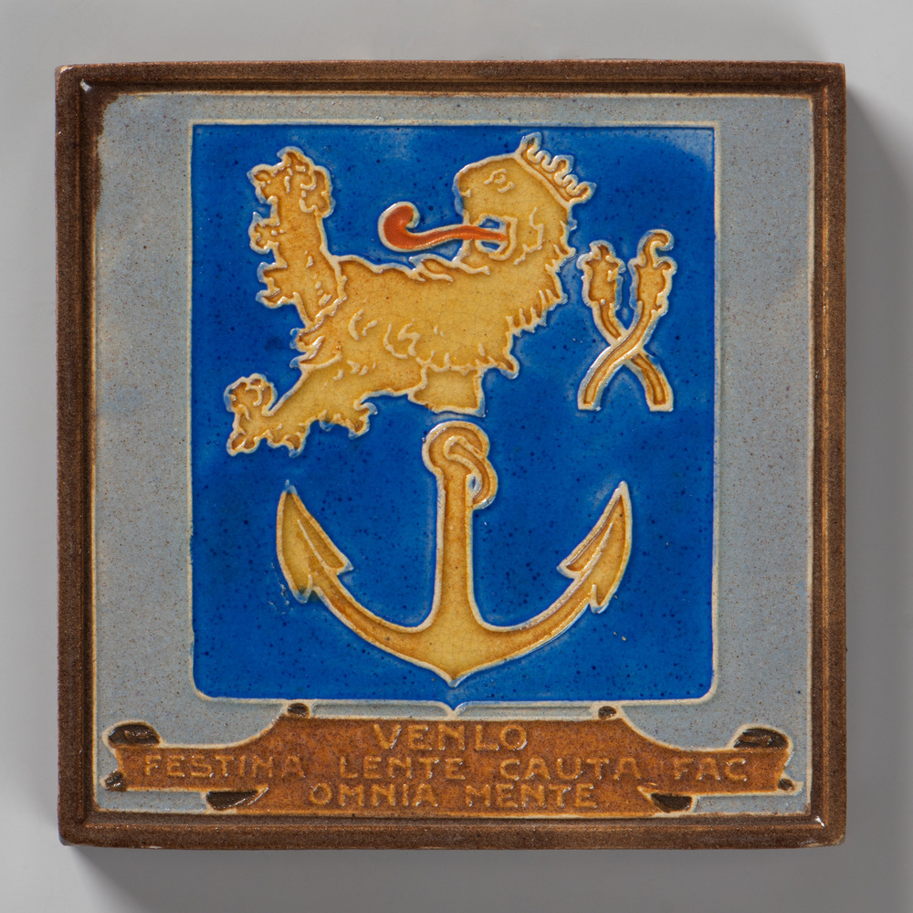 Tegel in cloisonné-techniek, met voorstelling: wapen...