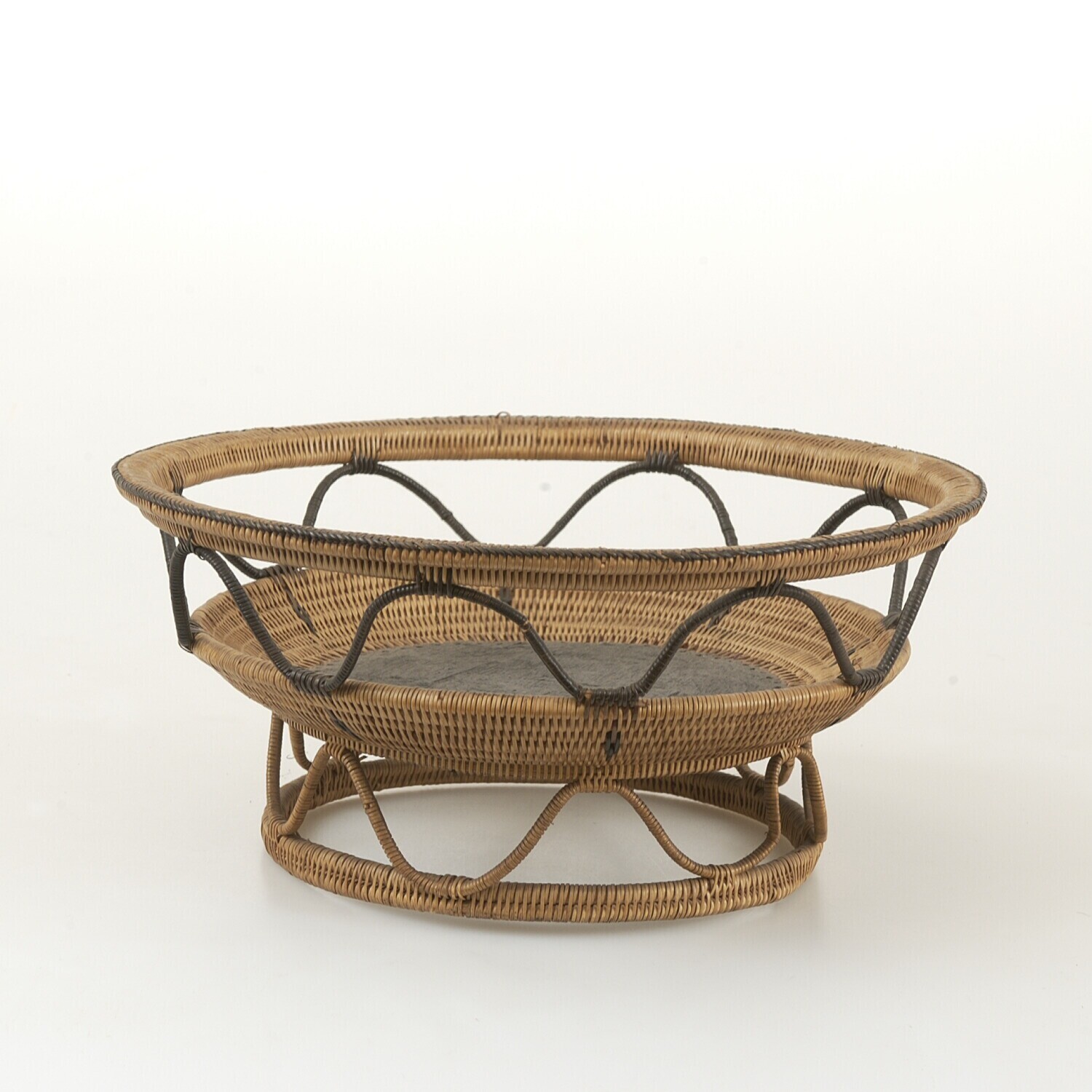 Gevlochten mand van rotan en hout