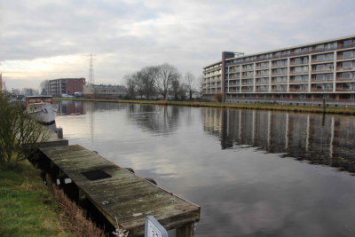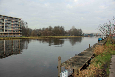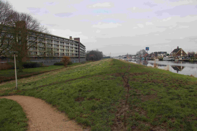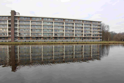 Appartementengebouw achter de dijk van de Lisserpoel...
