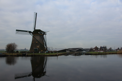 Windmolen achter de dijk van de Lisserpoelpolder lan...