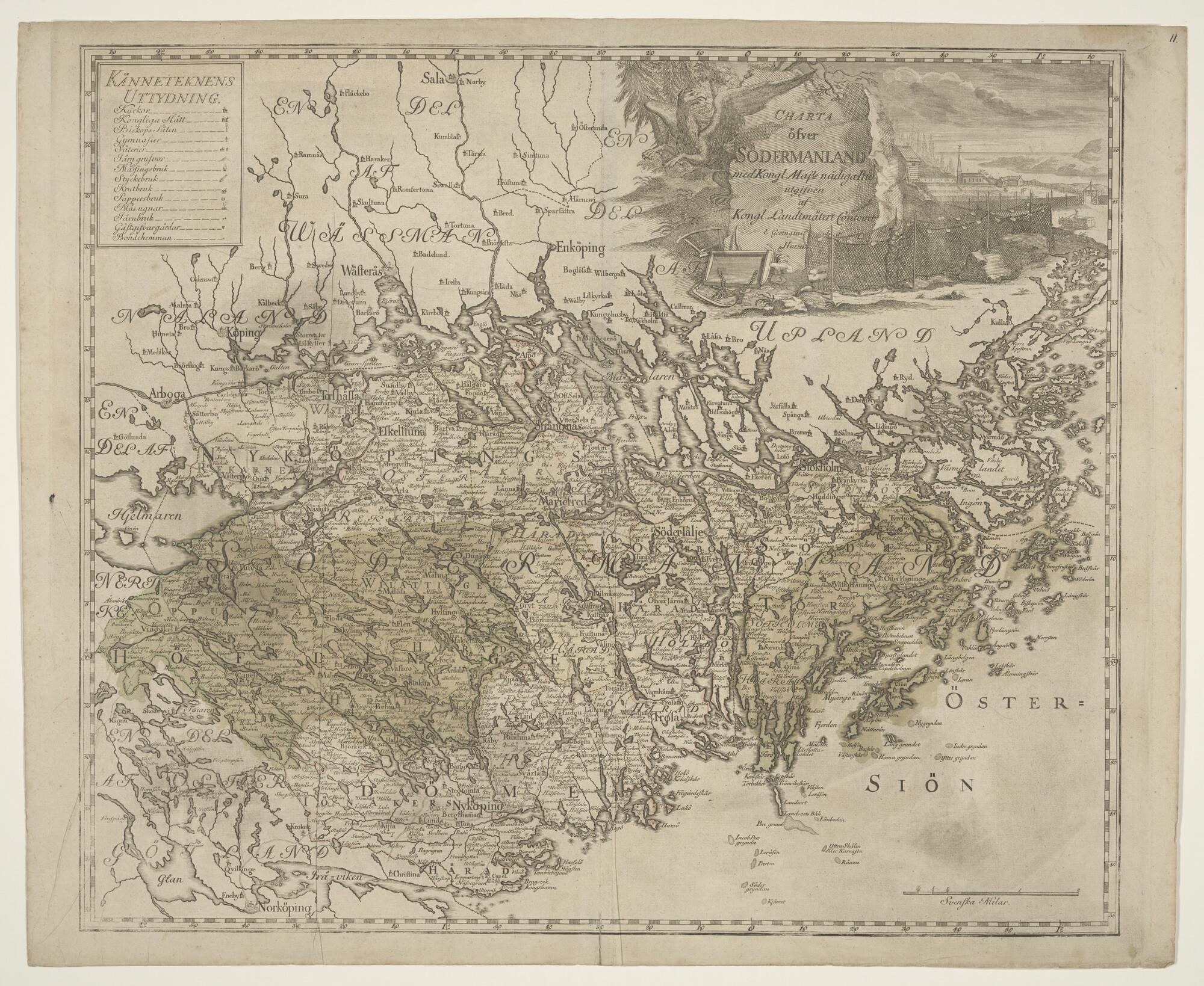 Met de hand gekleurde kaart van Wästmanland en Fierd...
