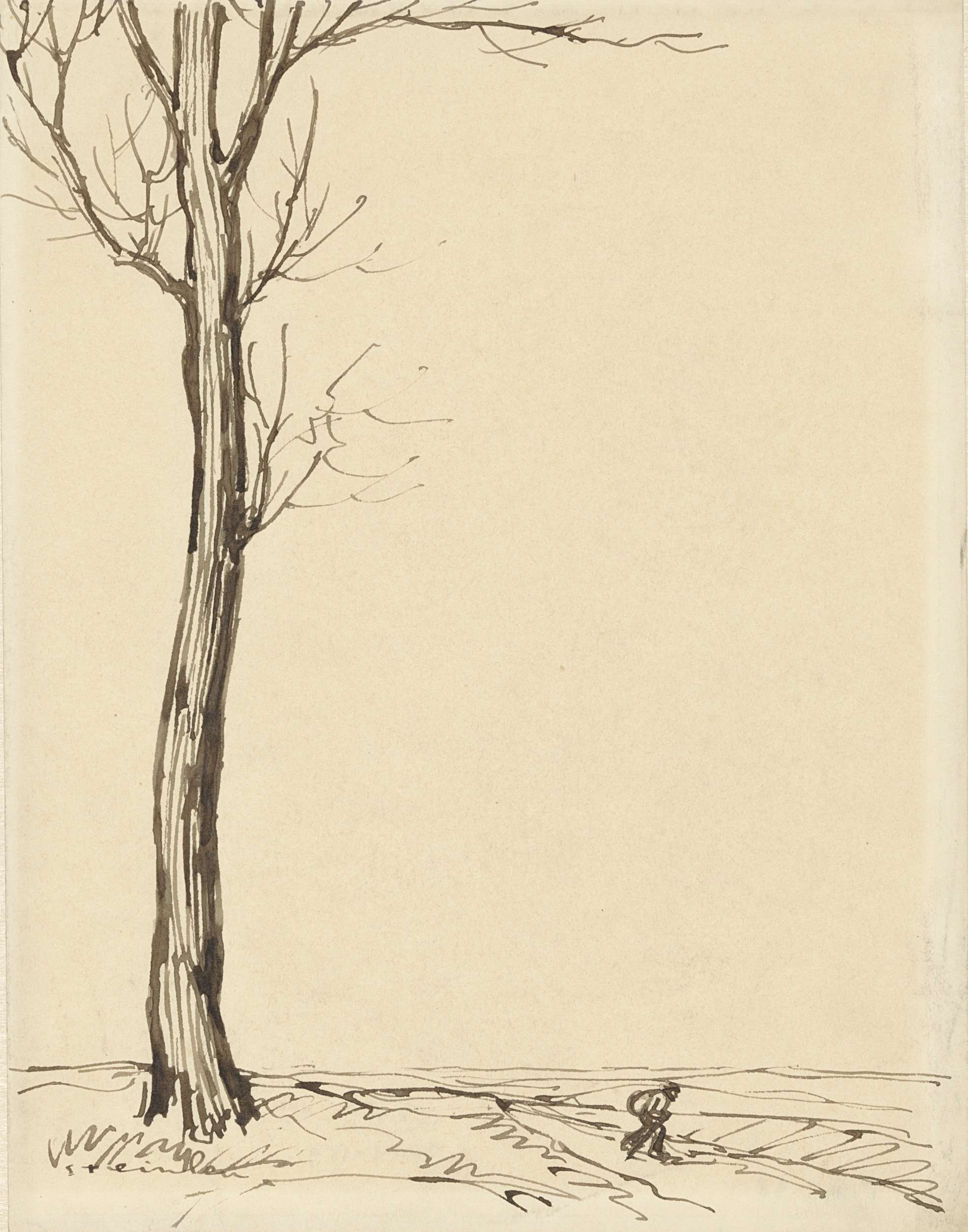 Studieblad met een tipi, vuurplaats en ruiter met ve...