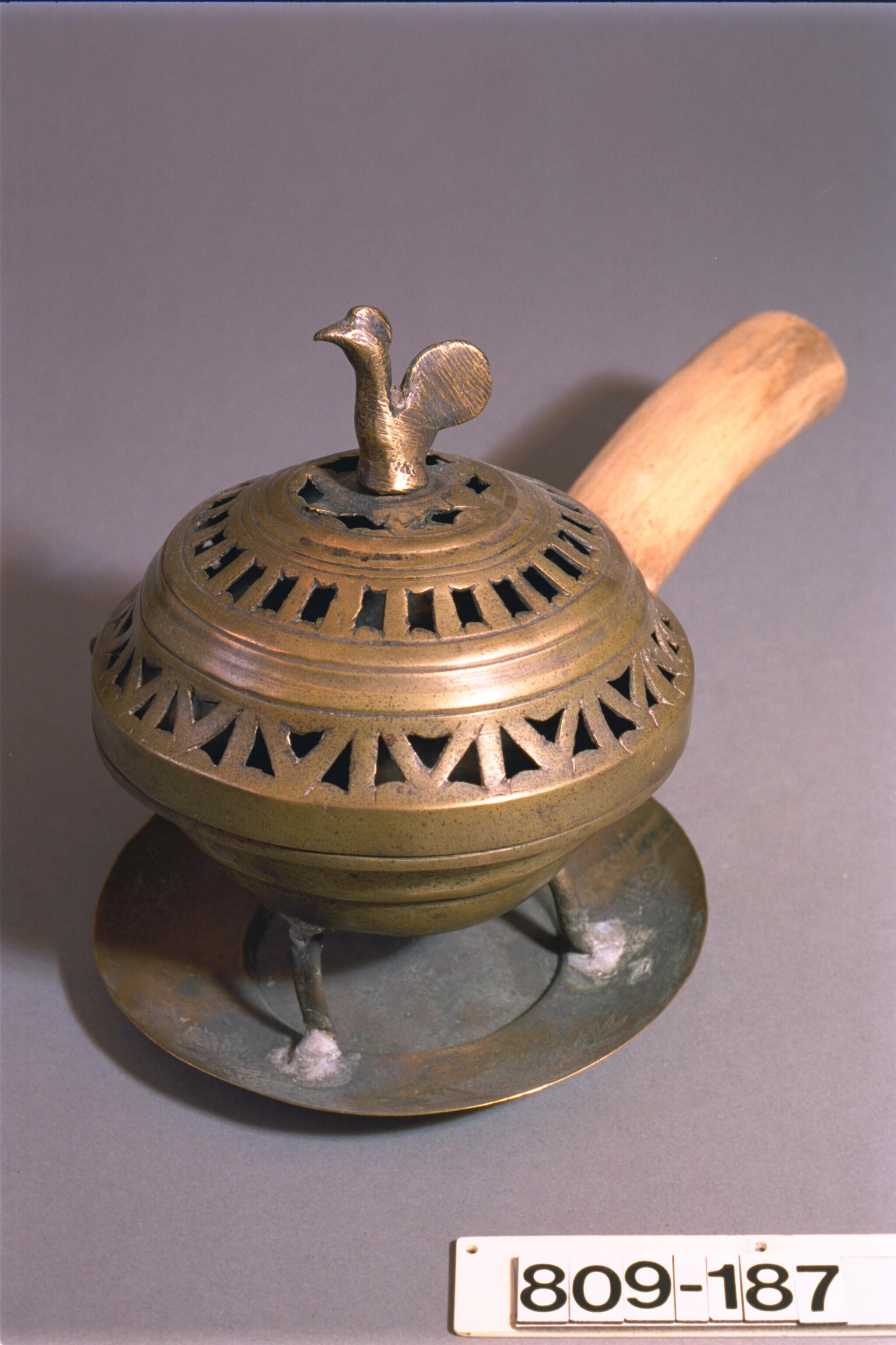 Messingen wierookvat met houten steel