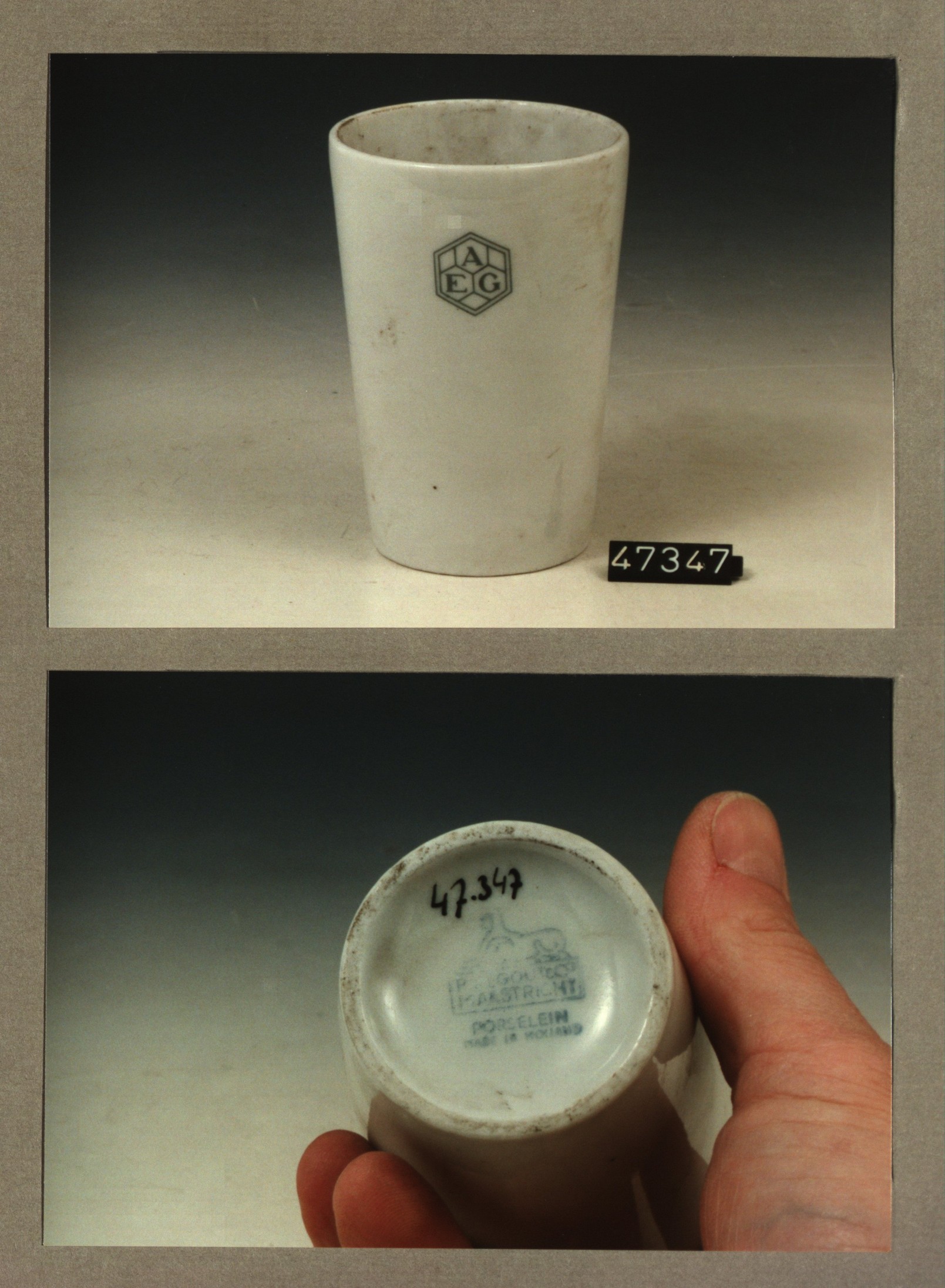 Beker met opschrift met decor AEG