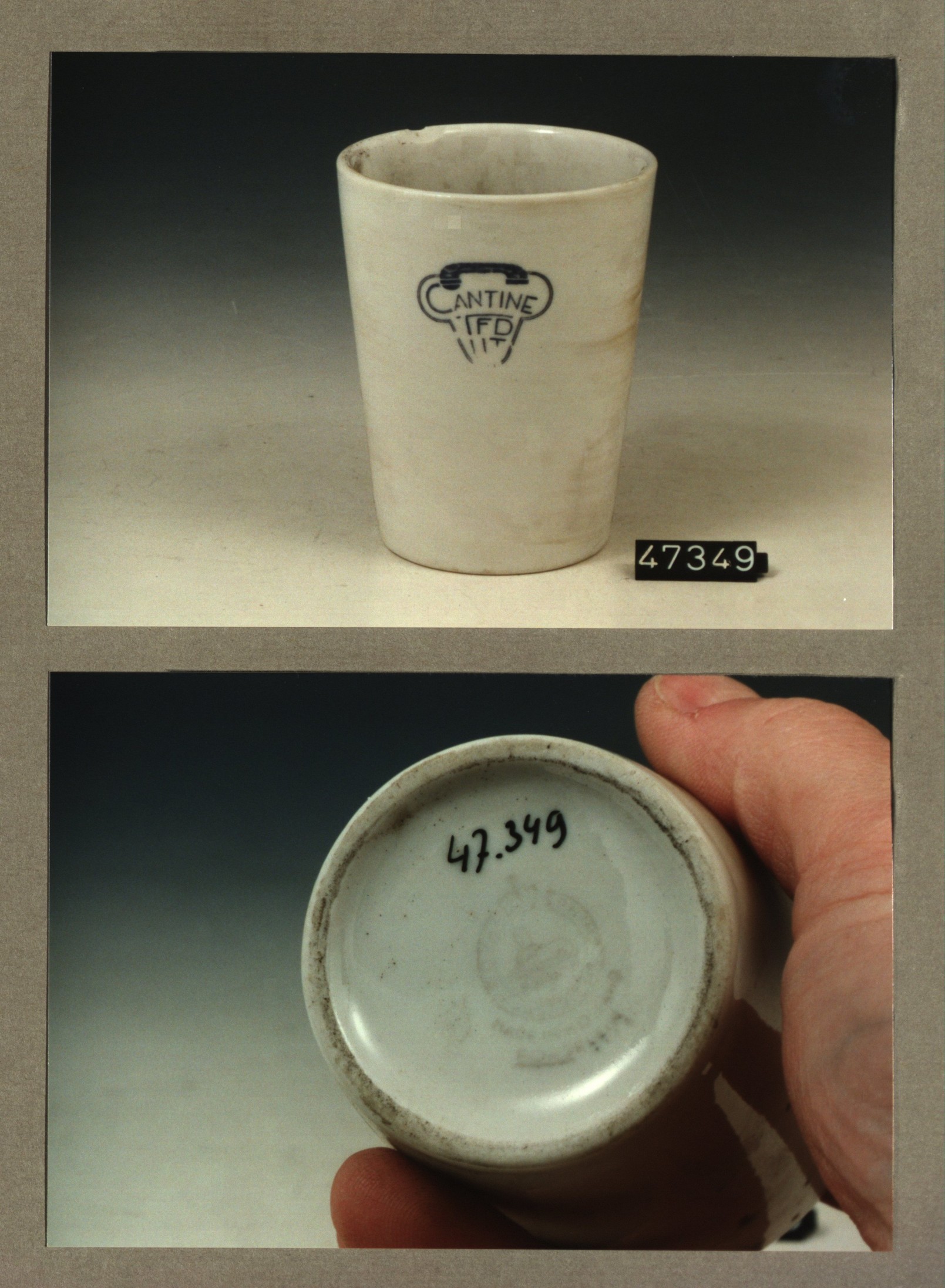 Beker met opschrift, model Z met decor Cantine FDT