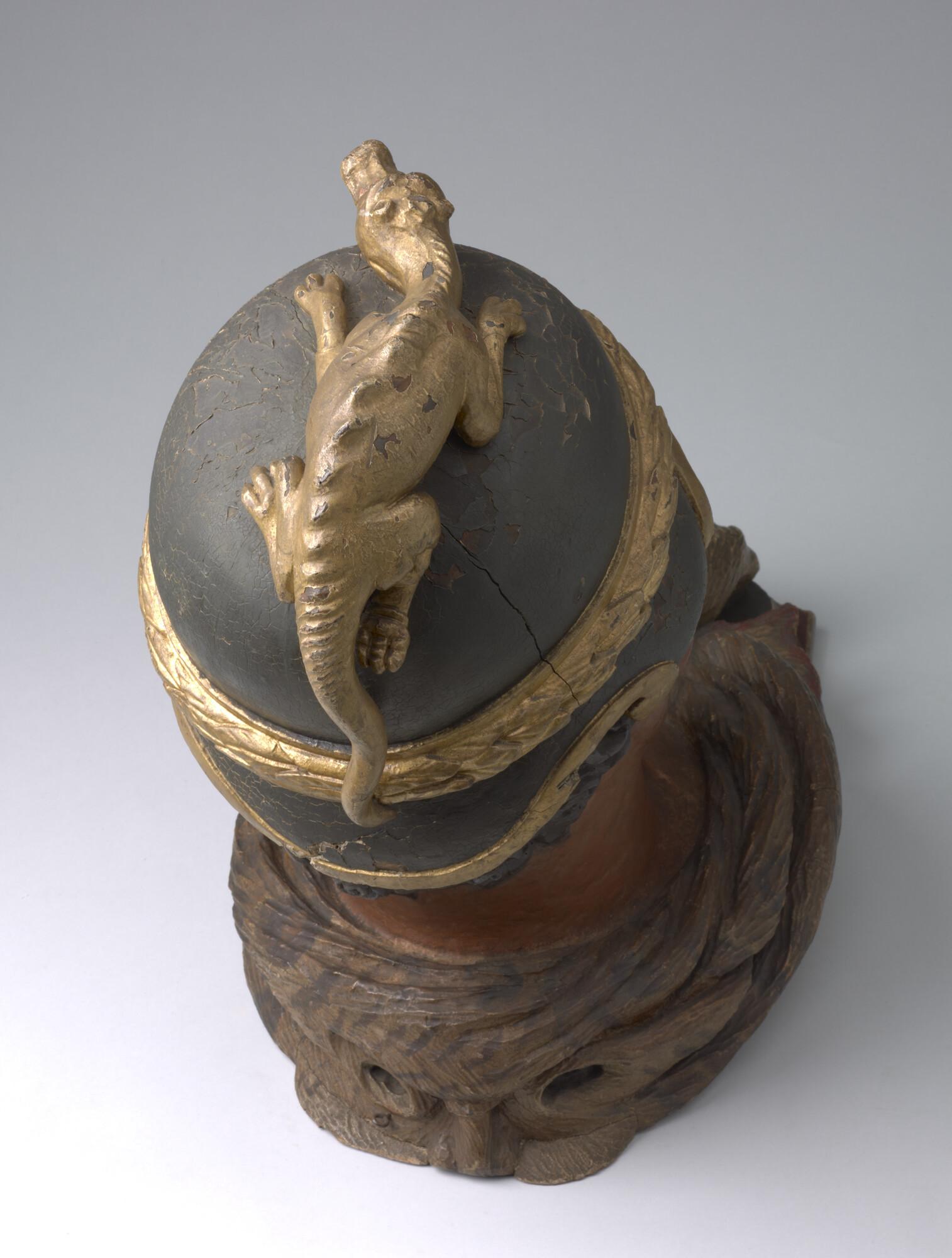 Roerkop, voorstellend een mannenhoofd met tropenhelm