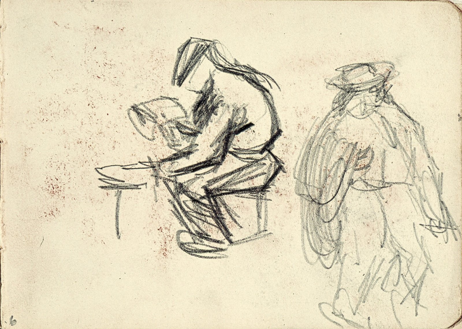 Zittende en lopende mannenfiguur
