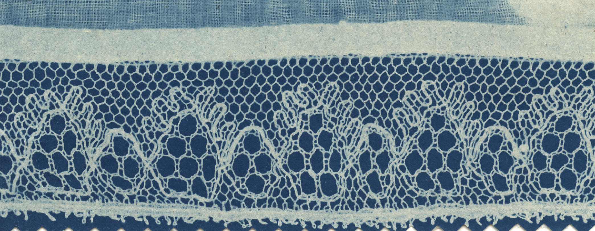 Detail 'hullekap' met Binche kant, Marken (blauwdruk...