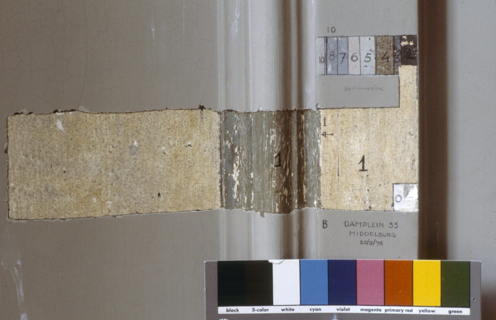 Interieur, tuinkamer,kleuronderzoek,proefstrook