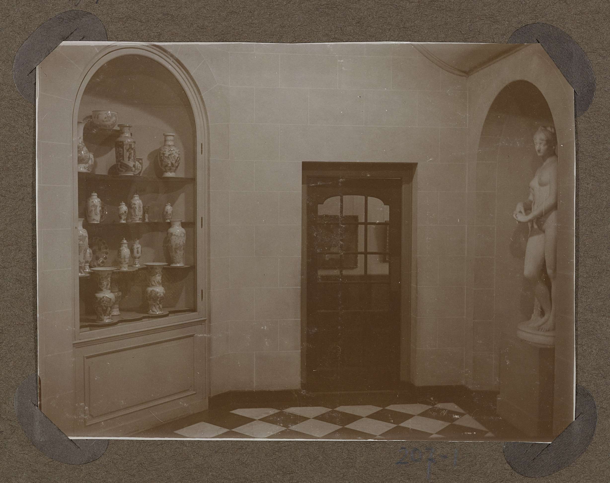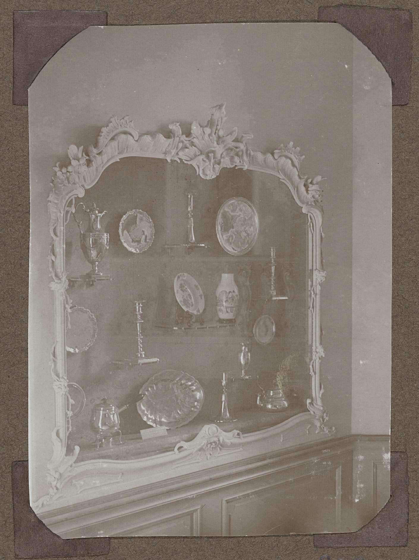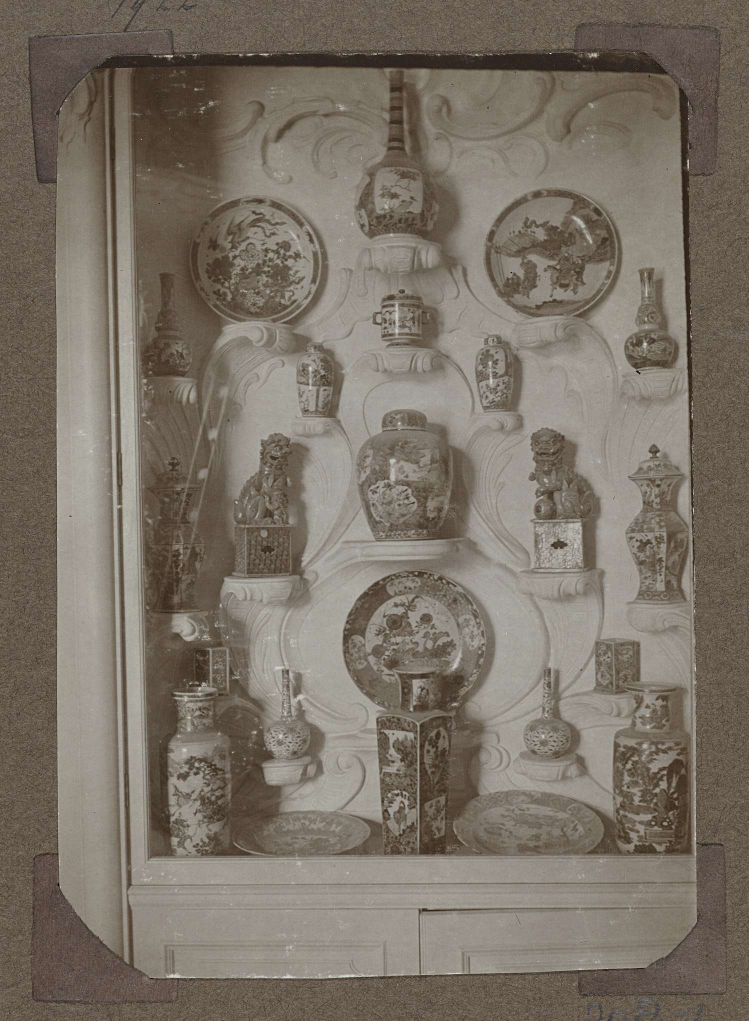 Porselein opgesteld in een wandkast in de Druckeruit...
