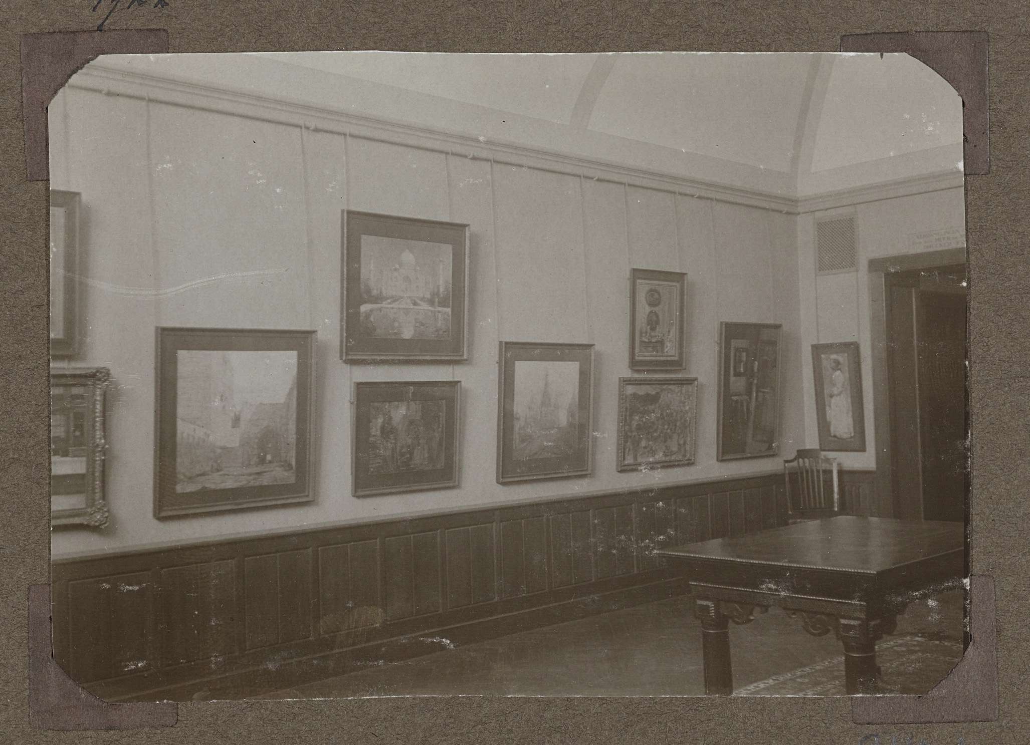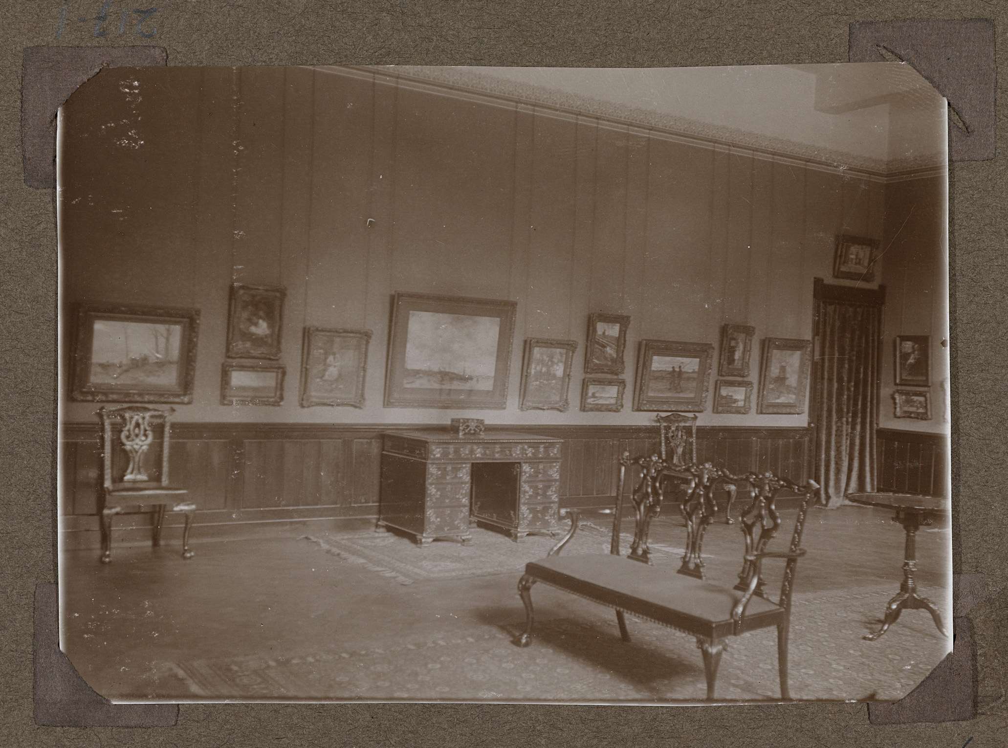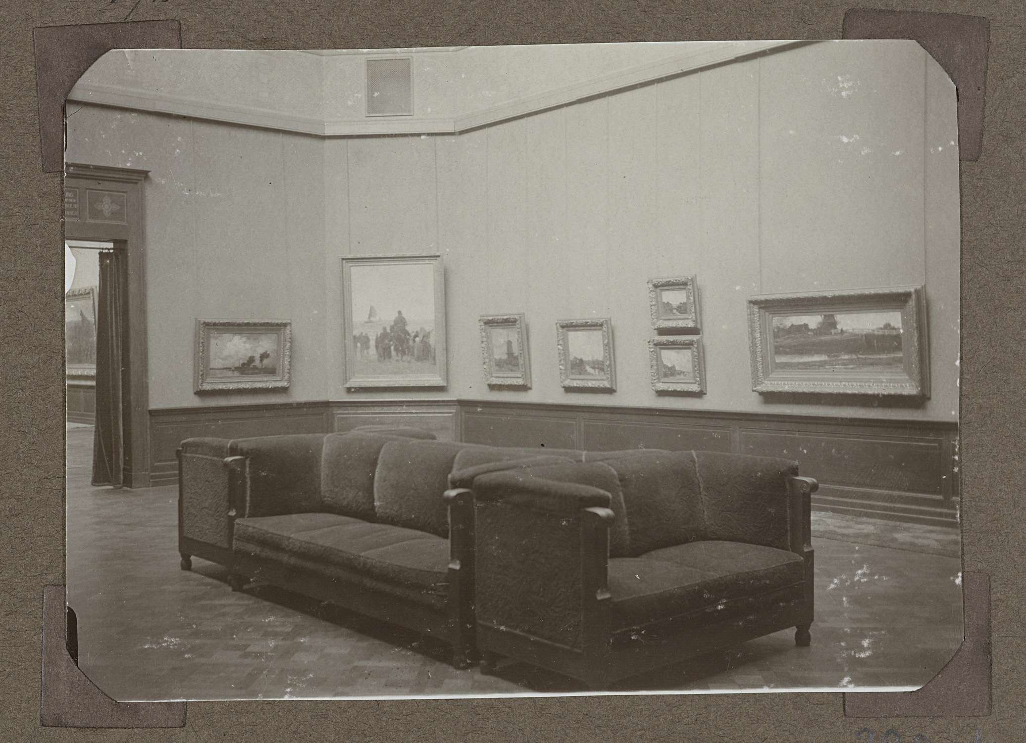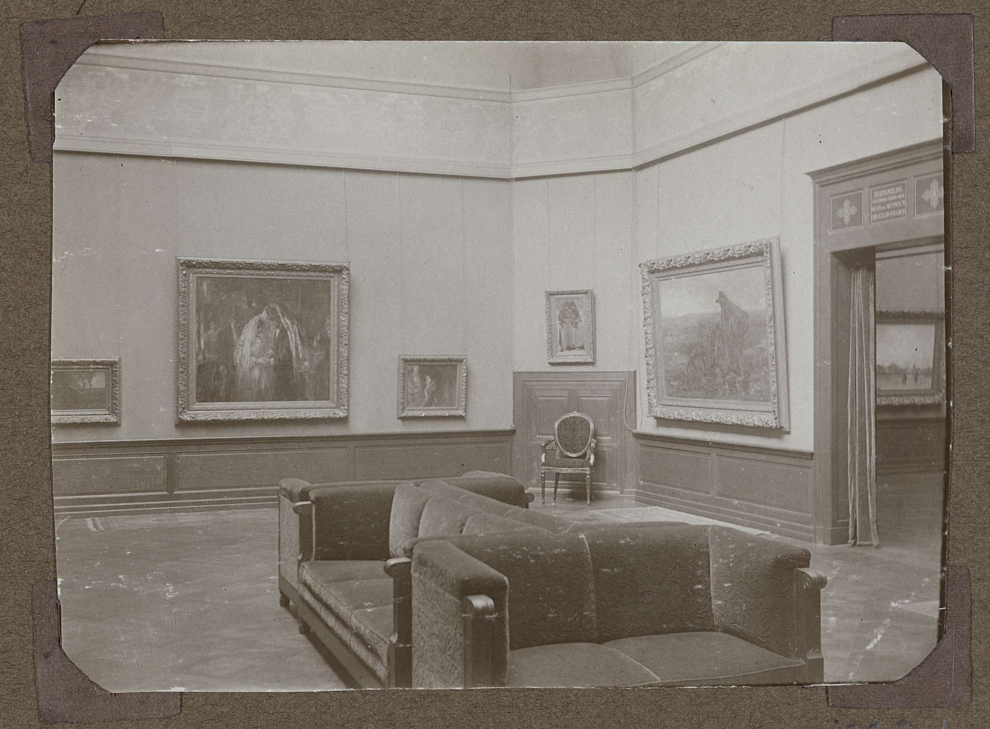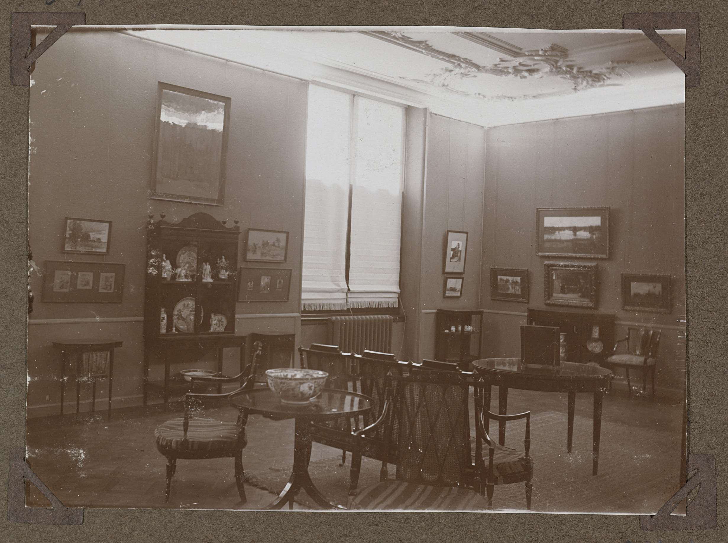 Opstelling van aquarellen en meubels in zaal 373 in ...