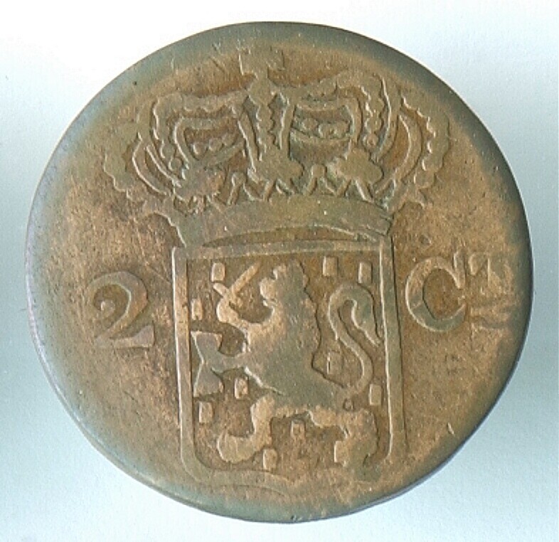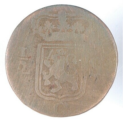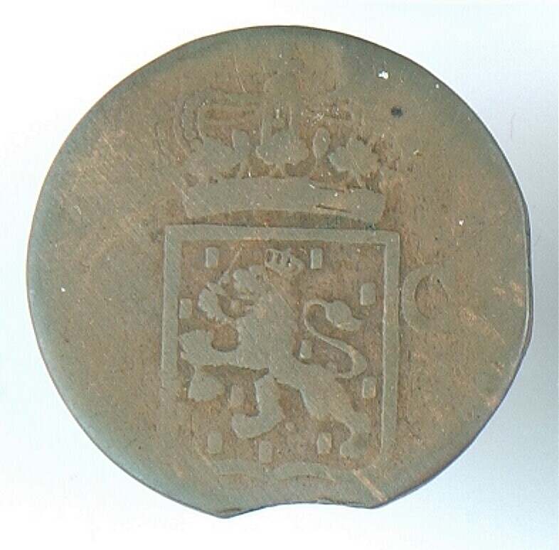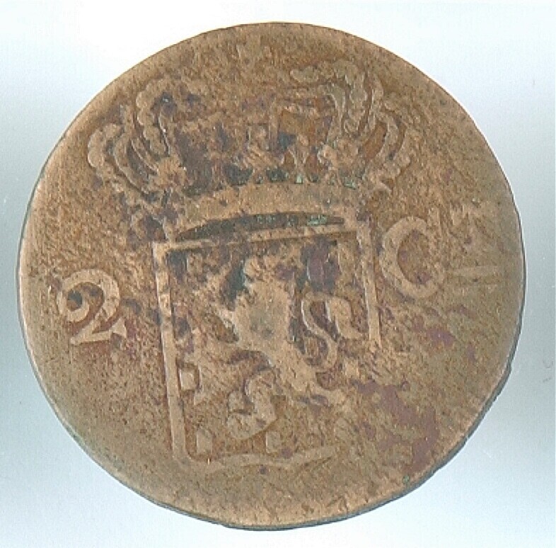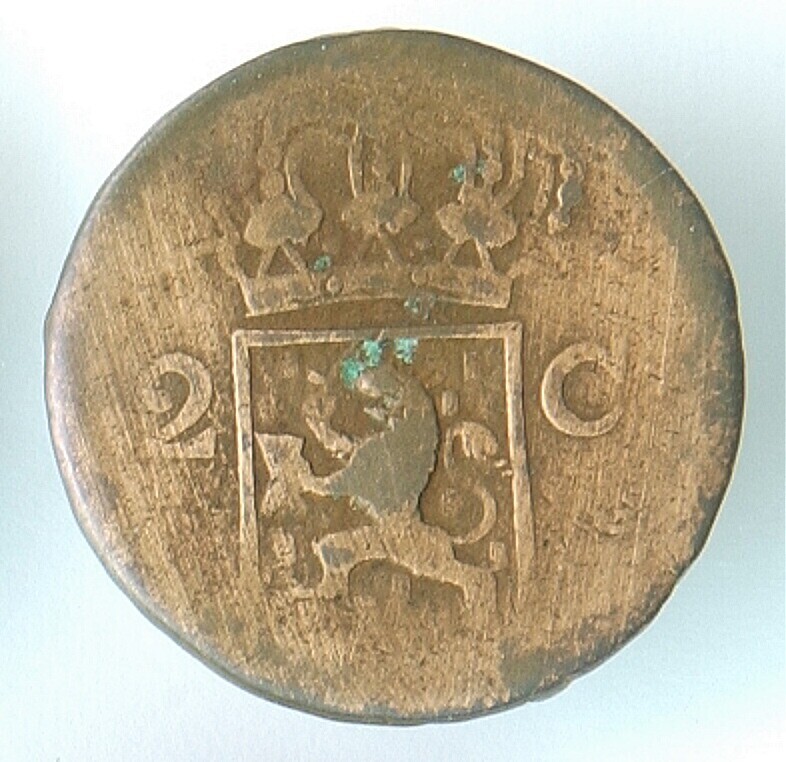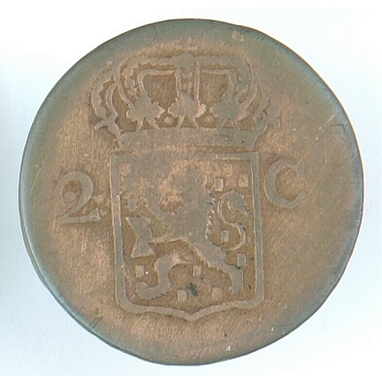 Munt, koperen dubbele duit Indiae Batav, wapen van H...