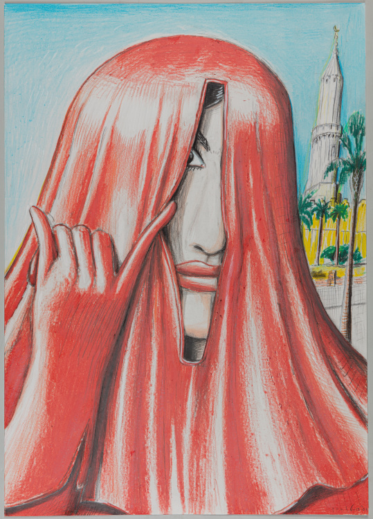Gesluierde vrouw met verticale kijkspleet