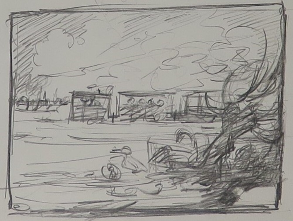 Woonwagen bij brug, voorstudie kalenderplaat Woonwag...