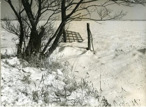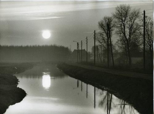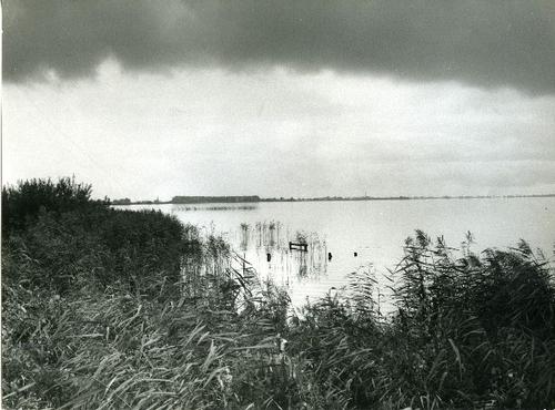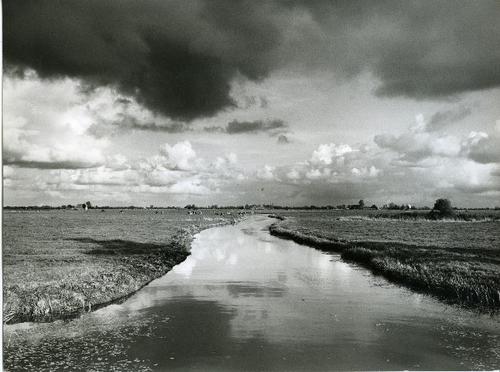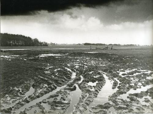 Foto in zwart-wit van ondergelopen land door J.D. de...