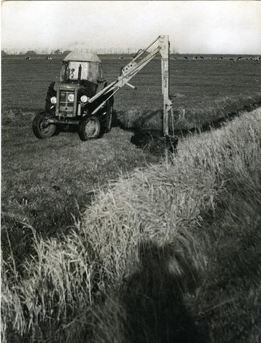 Foto in zwart-wit van het hekkelen van een sloot met...