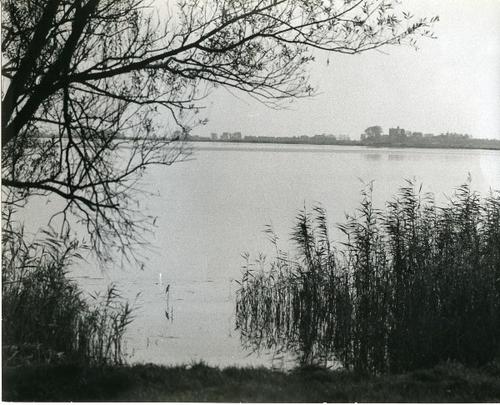 Foto in zwart-wit van het Slotermeer door J.D. de Jo...