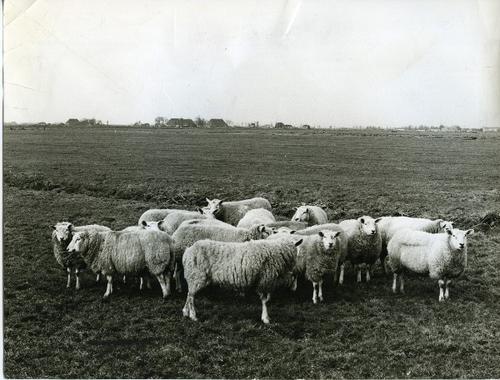 Foto in zwart-wit van Texelse schapen in een weiland...