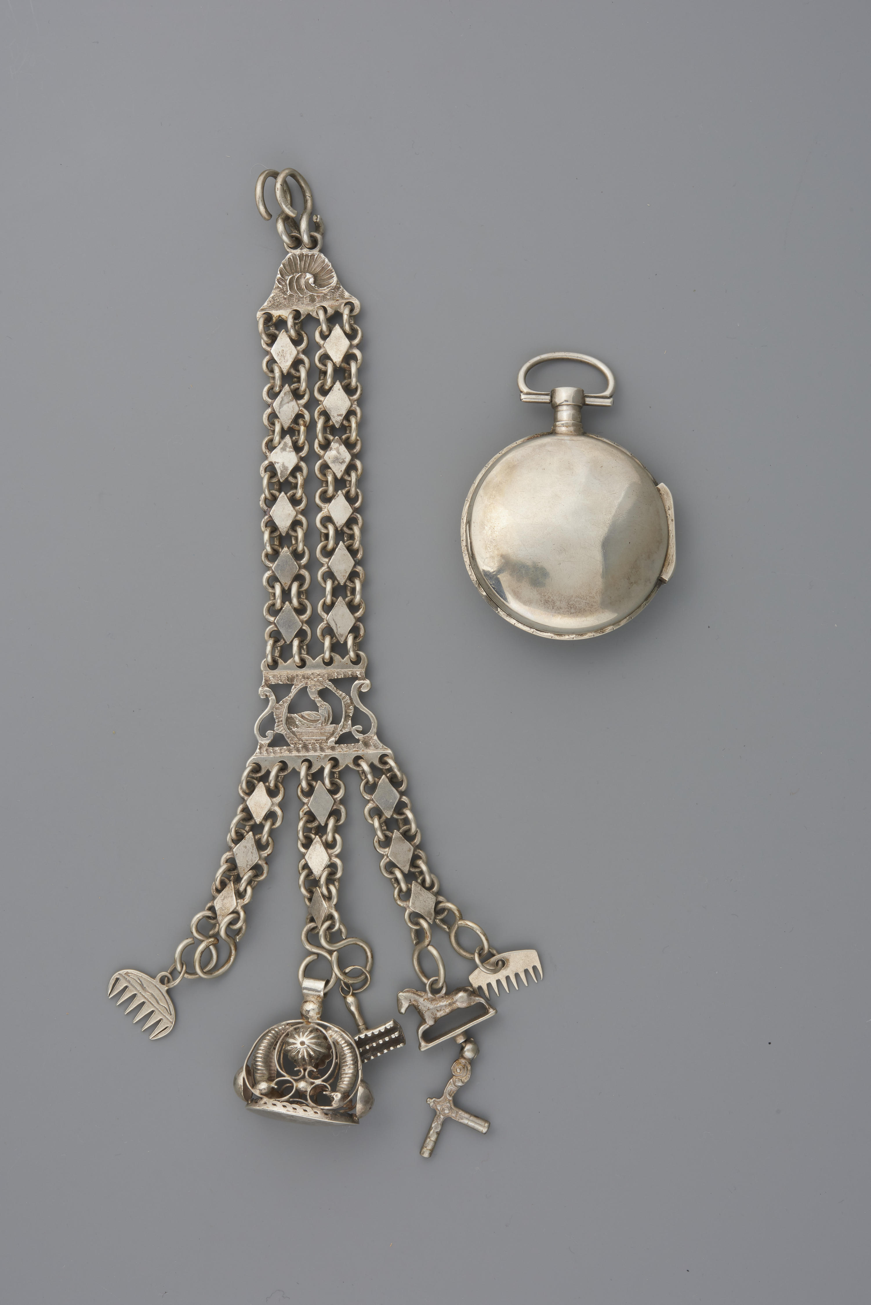 Zilveren horloge met horlogeketting, Aagtekerke, cir...