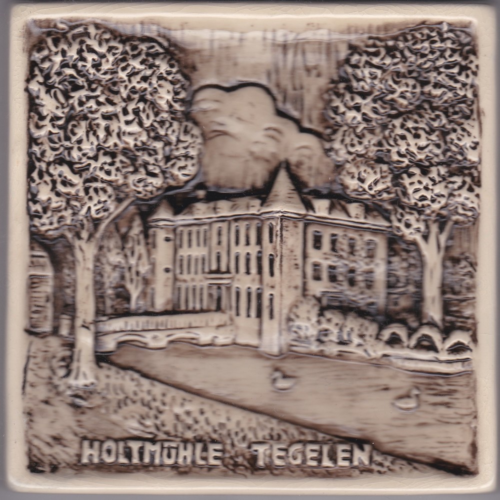 Tegel in reliëf, met voorstelling: Holtmühle Tegelen...