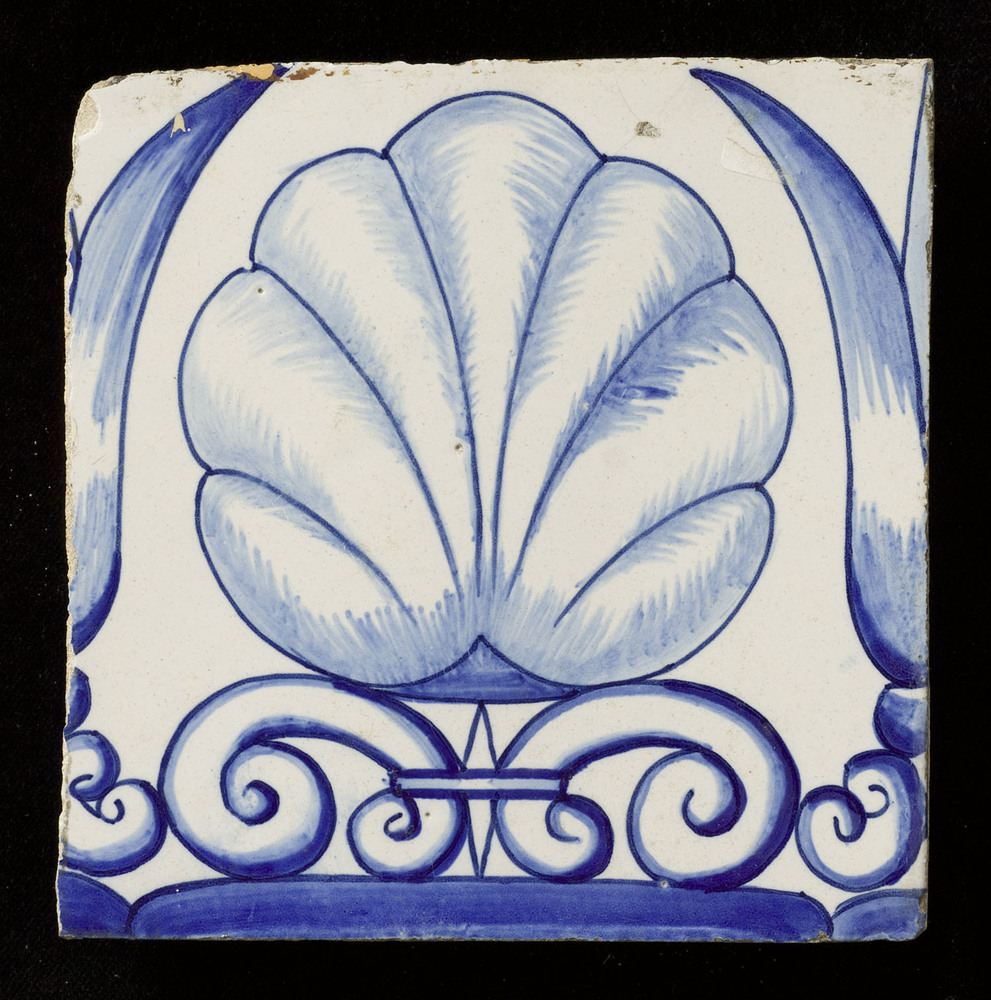 Scherf van keramiek, tinglazuur, gemaakt in Nederlan...