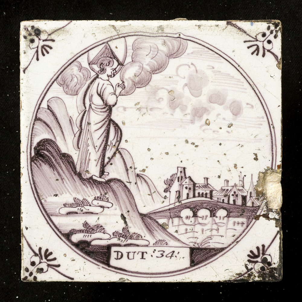 Tegel van keramiek, tinglazuur, voorstellende een be...