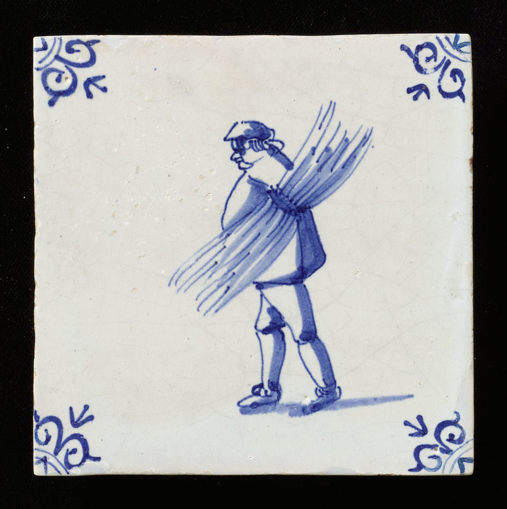 tegel van aardewerk in onderglazuur, voorstellende: ...