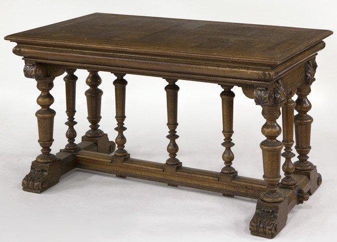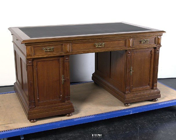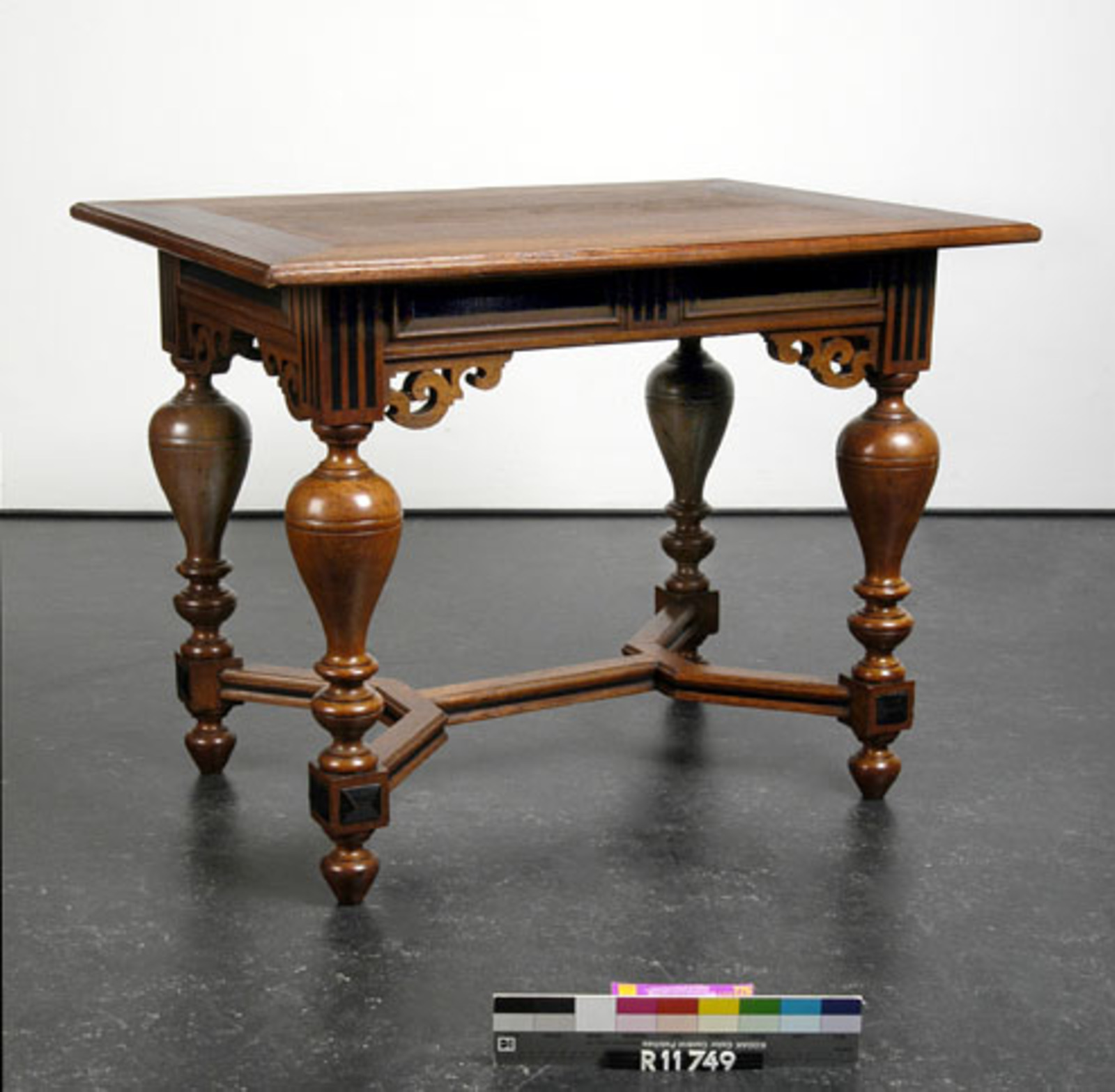 diverse houtsoorten belijmd met padoek- en cederhout, versierd met beschilderde wit marmeren plaquettes (1)
