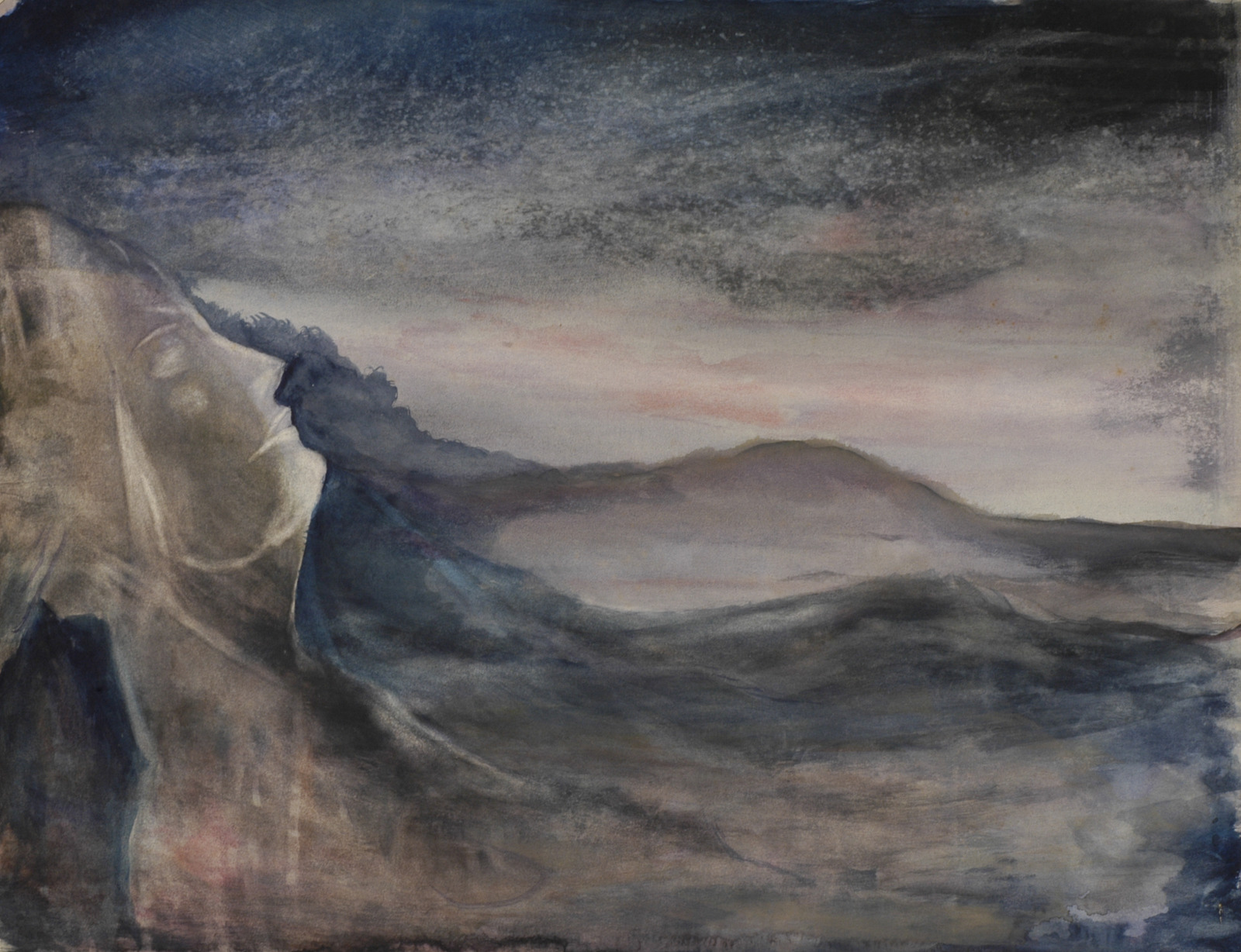 Kleurschets landschap horizontaal/ vertikaal met don...