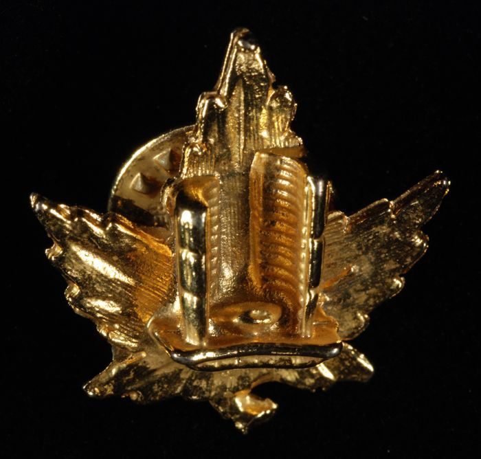 Draagspeldje in goud op esdoornblad (maple leaf) met...
