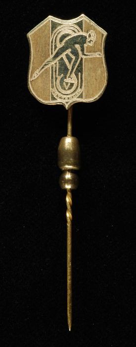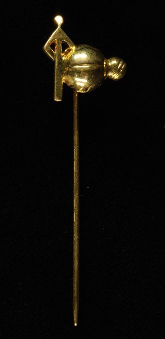 Draagspeldje in goud, bal met aan één zijde pijlvorm...