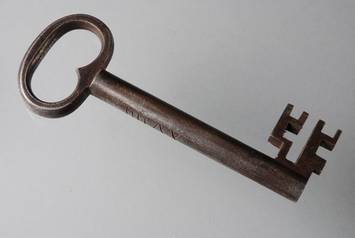 Sleutel met ingekrast "XVIIII", holle sleutelsteel e...