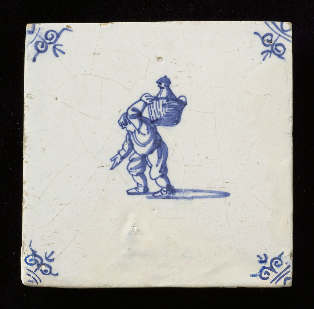 tegel van aardewerk met tinglazuur, voorstellende: h...