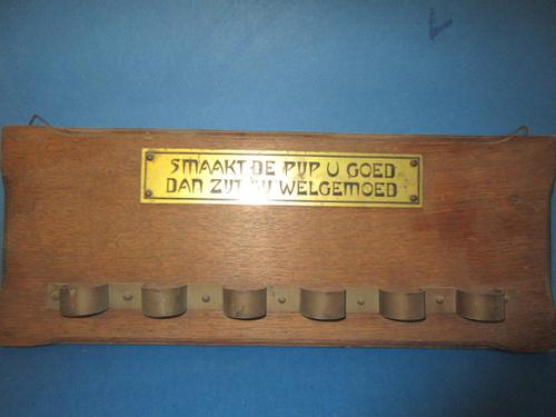 Pijpenrek van hout en koperplaatje