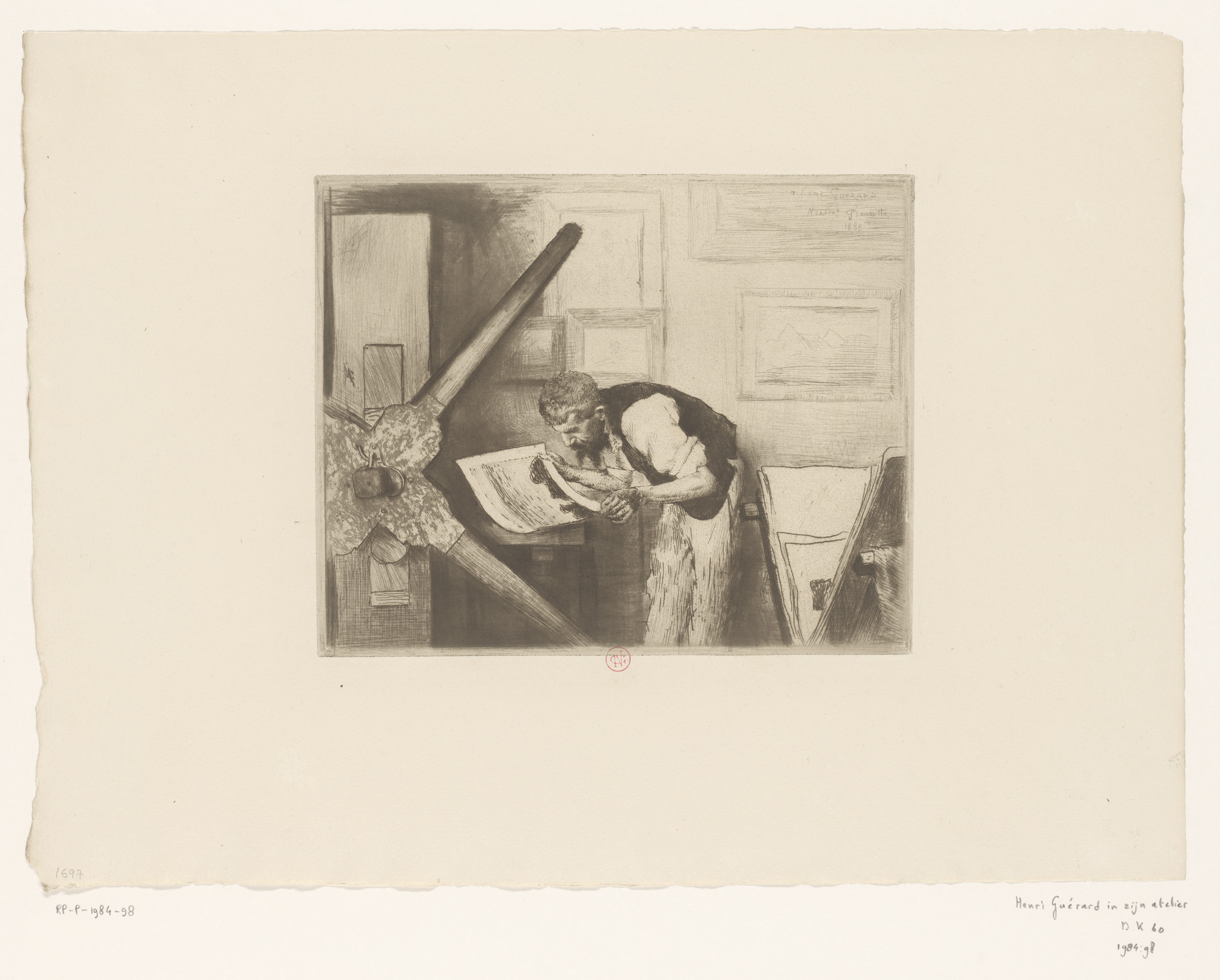 Portret van Henri Charles Guérard in zijn atelier
