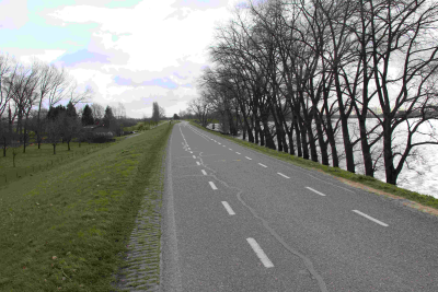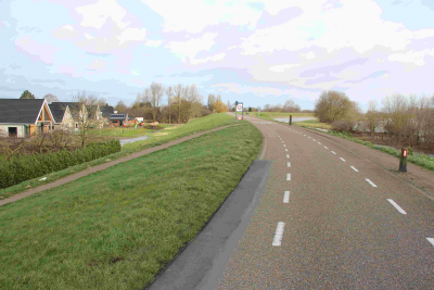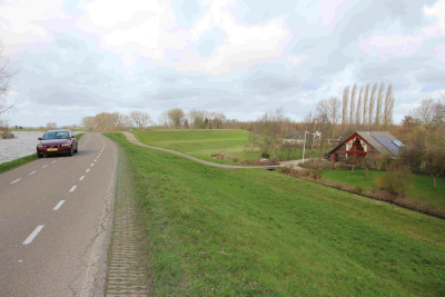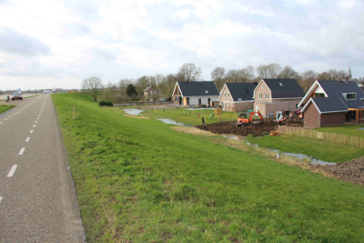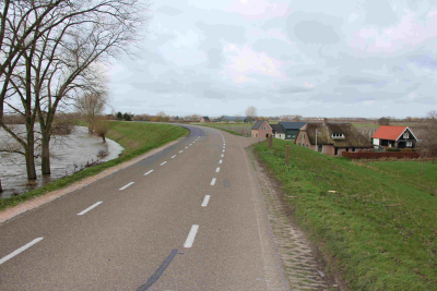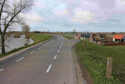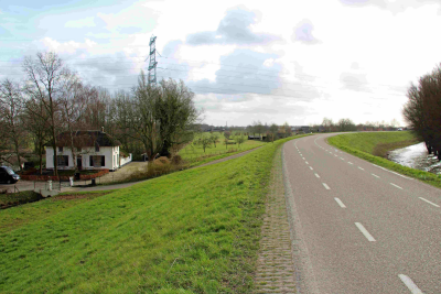 Huizen achter de dijk langs de Waal, februari 2020