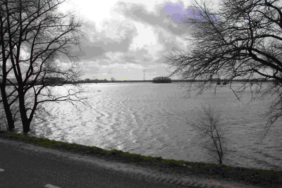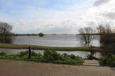 De Waal bij Tiel tijdens hoog water, februari 2020