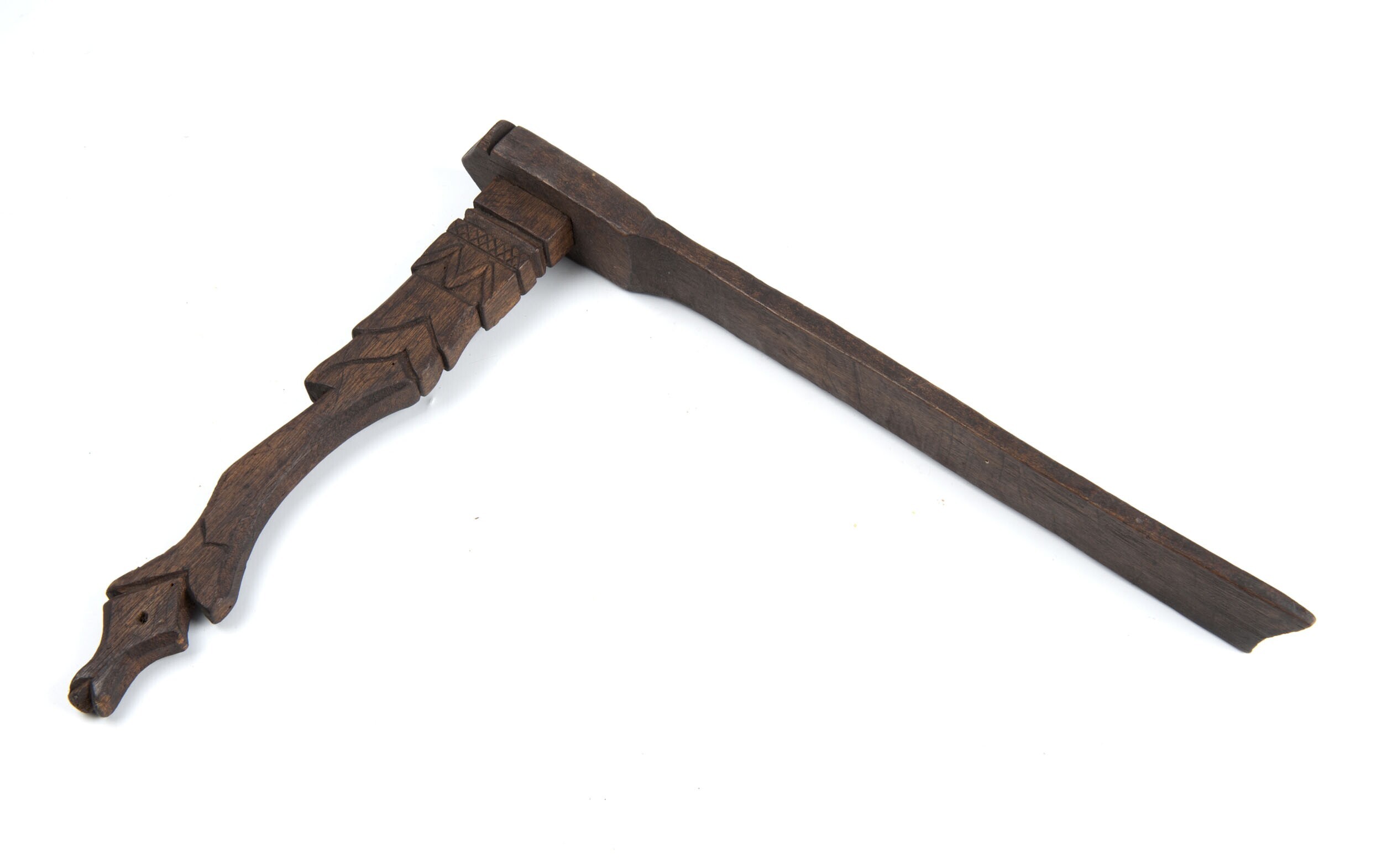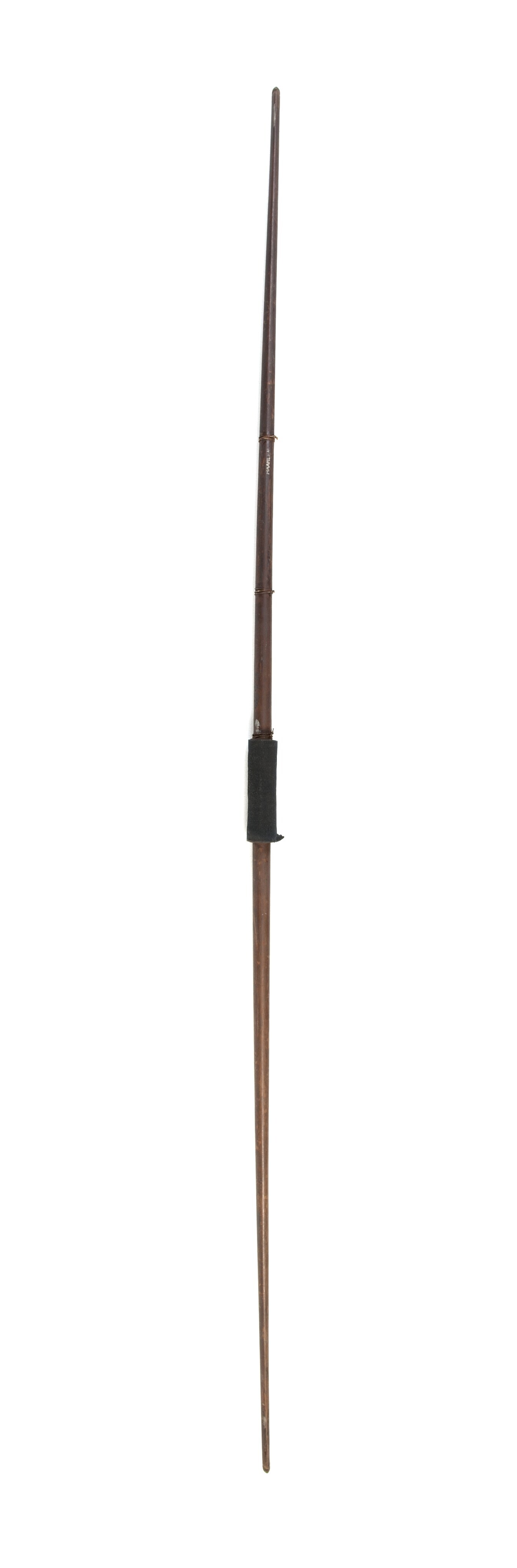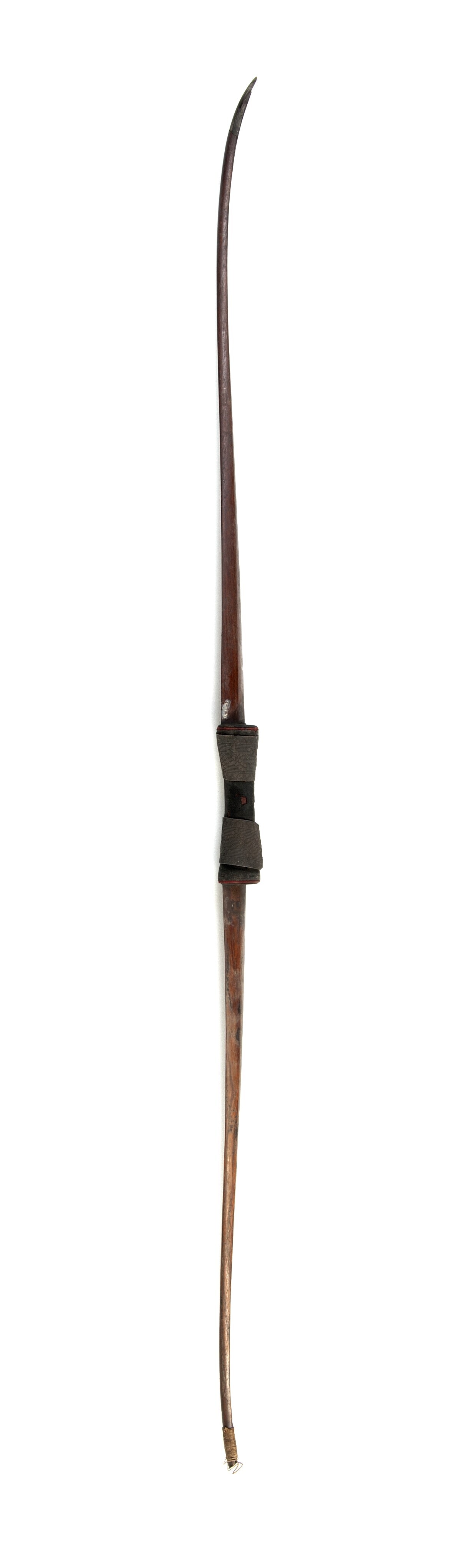 Houten boog voorzien van een handvat bekleed met kat...