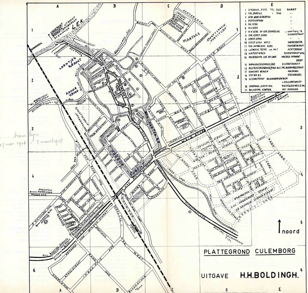 Plattegrond van Culemborg uit ca. 1950