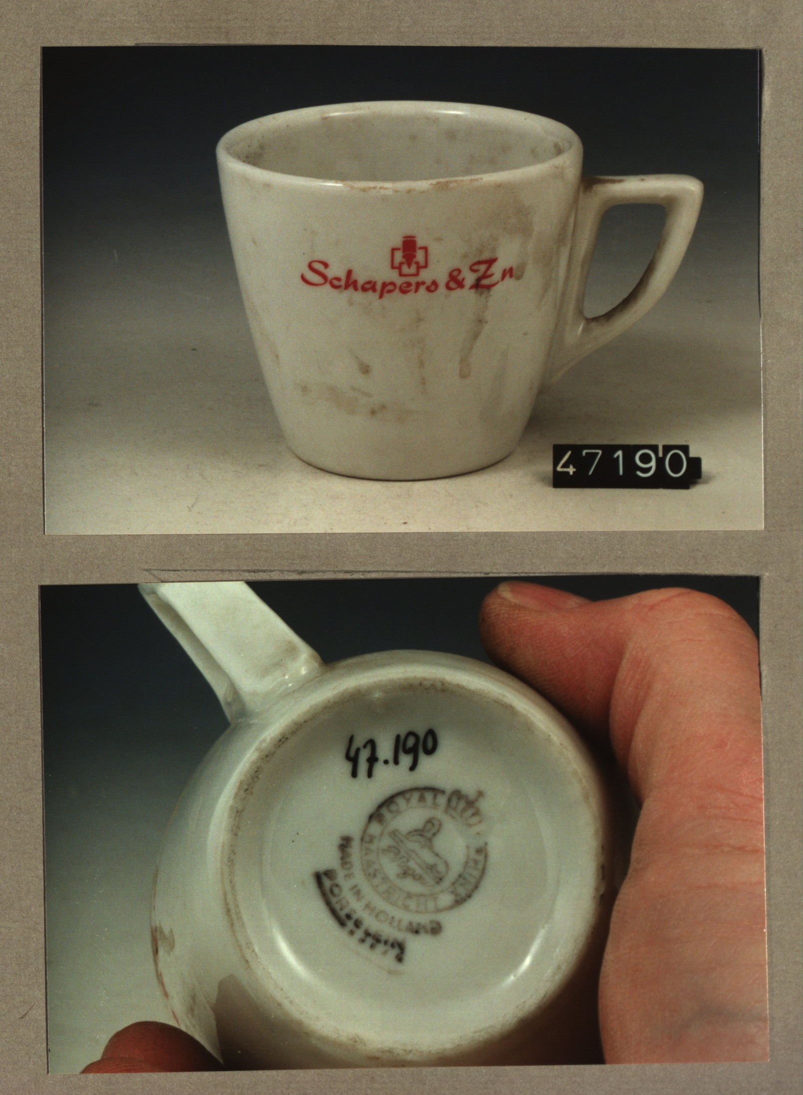 Kop met opschrift, model P2 met decor Schapers&Zn.