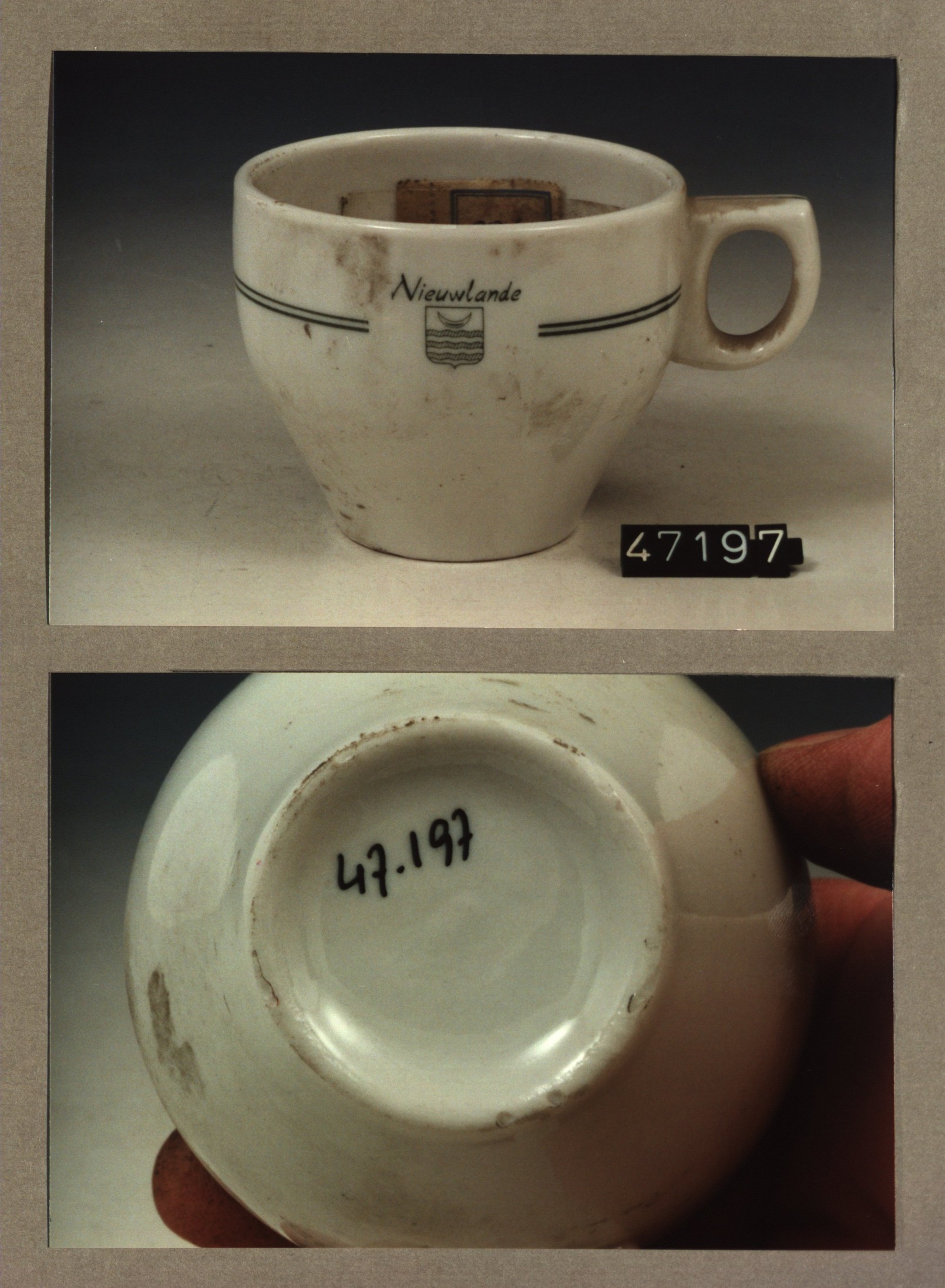 Kop met opschrift, model SPH met decor Nieuwlande