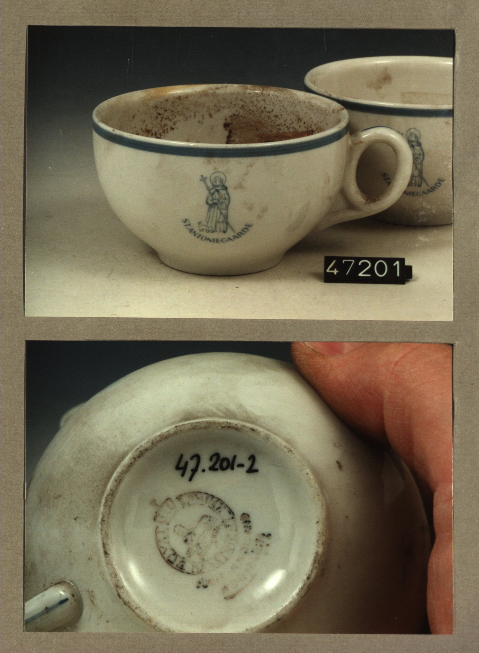 Kop met opschrift, model F met decor St. Antoniegaarde
