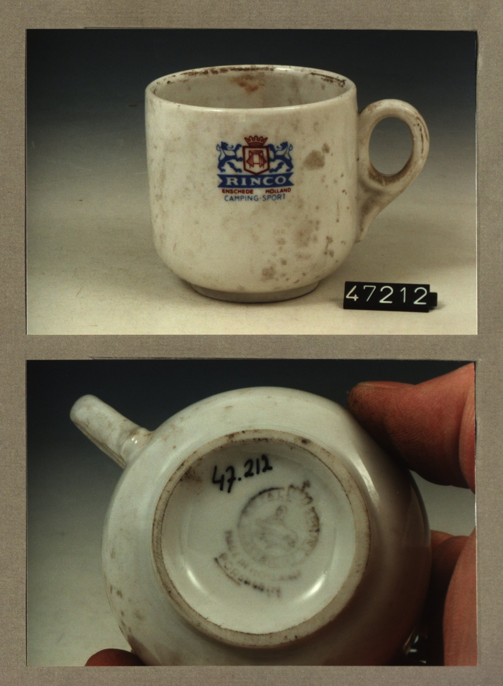 Kop met opschrift, model F met decor Rinco camping s...